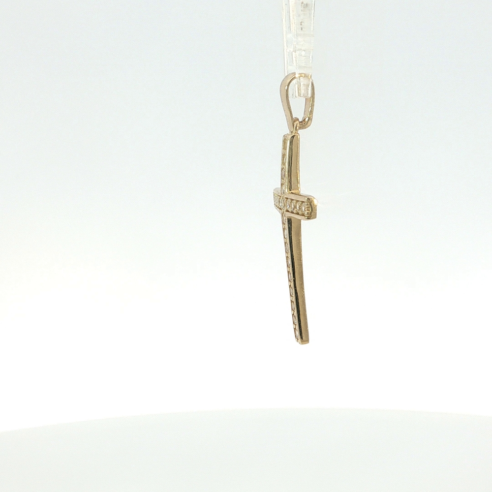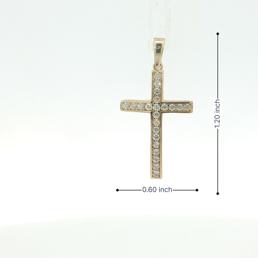 This stunning and elegant 14k channel-set cubic zirconia cross makes a bold statement of faith. Weighing approximately 1.2 grams, it is lightweight yet durable, ensuring quality without sacrificing comfort. Measuring about 1.6 inches by 0.60 inches, the cross is distinct but not overwhelming. It features multiple premium cubic zirconia stones, each meticulously channel-set for secure placement and maximum brilliance, providing a luxurious sparkle. Its timeless design makes it a meaningful gift or a personal keepsake.