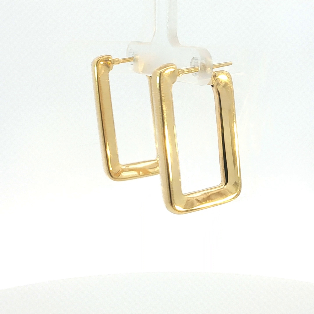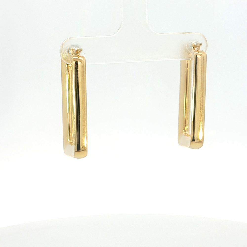 These stunning 14k rectangular hoop earrings are the perfect accessory for any style or occasion. Made from high-quality gold, they have a total weight of approximately 5 grams, providing a comfortable yet substantial feel when worn. Measuring 1.30 inches by 0.75 inches, these earrings boast a sleek design and refined elegance. Their rectangular shape adds a modern twist to traditional hoop earrings, making them versatile enough to complement both casual and formal attire. They would be a wonderful addition to any jewelry collection.