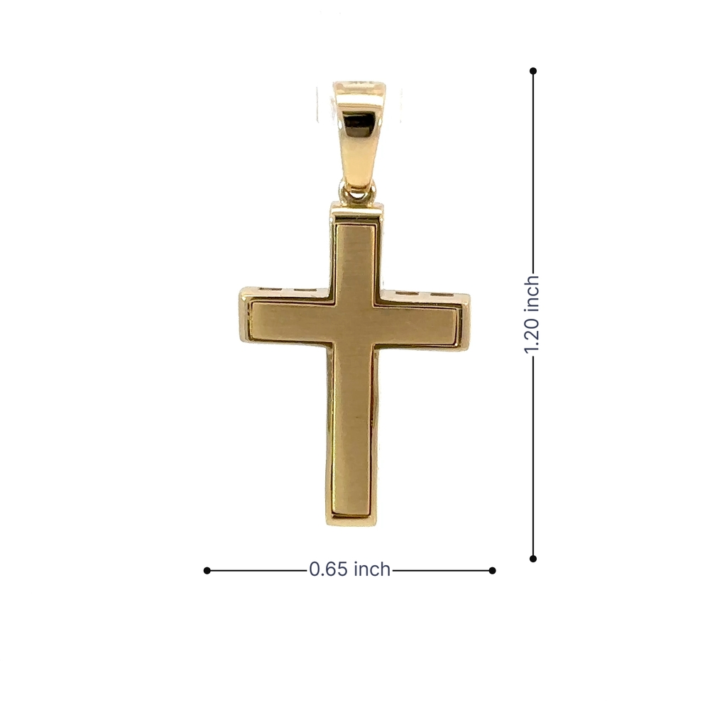 Presenting a captivating 14k Satin & High Polish finished Cross pendant, weighing 2.2g. Measured at 1.25 inches, this pendant seamlessly combines elegance with symbolism. The sophisticated satin finish contrasts beautifully with the highly polished accents, resulting in a stunning piece that embodies faith and fashion. Crafted from premium quality 14-karat gold, it boasts a luxurious sheen that can last for generations. The impeccable detailing evokes timeless grace, making it an exquisite addition to any jewelry collection. Limited quantity available.