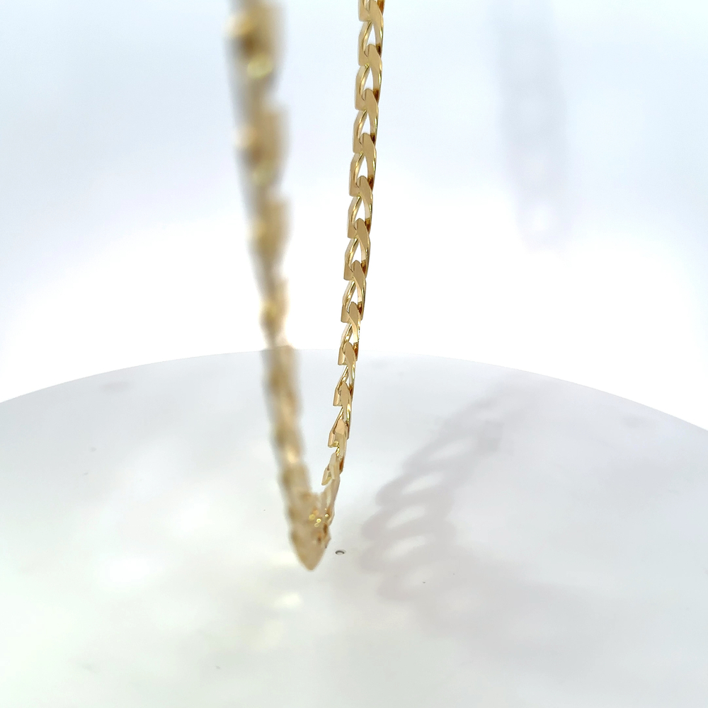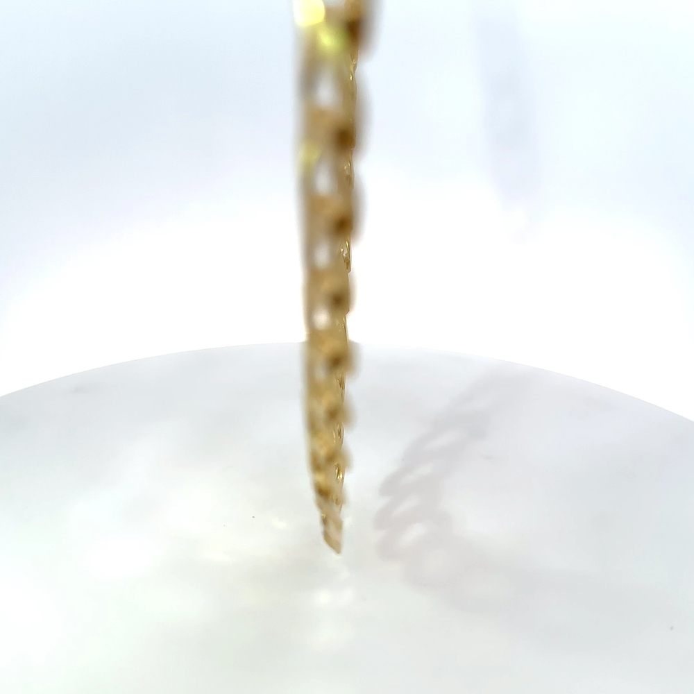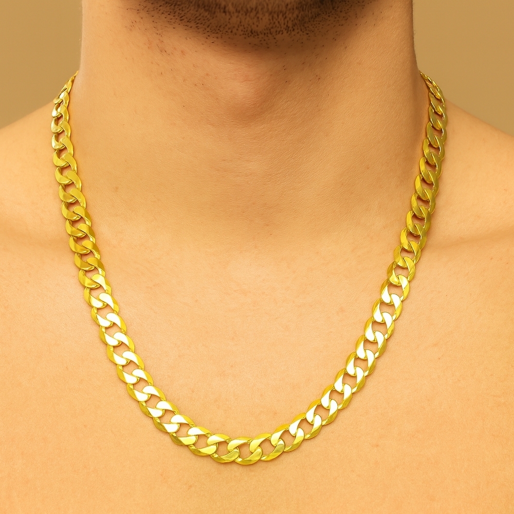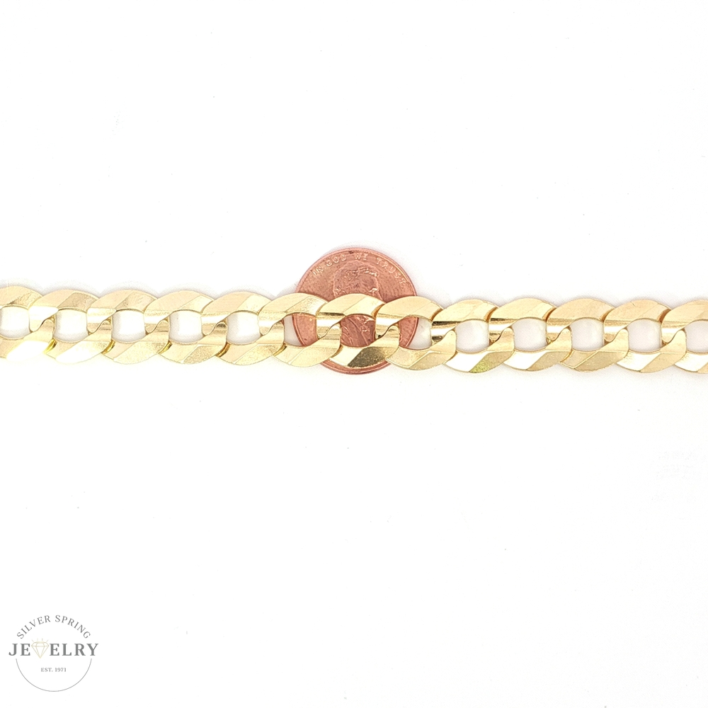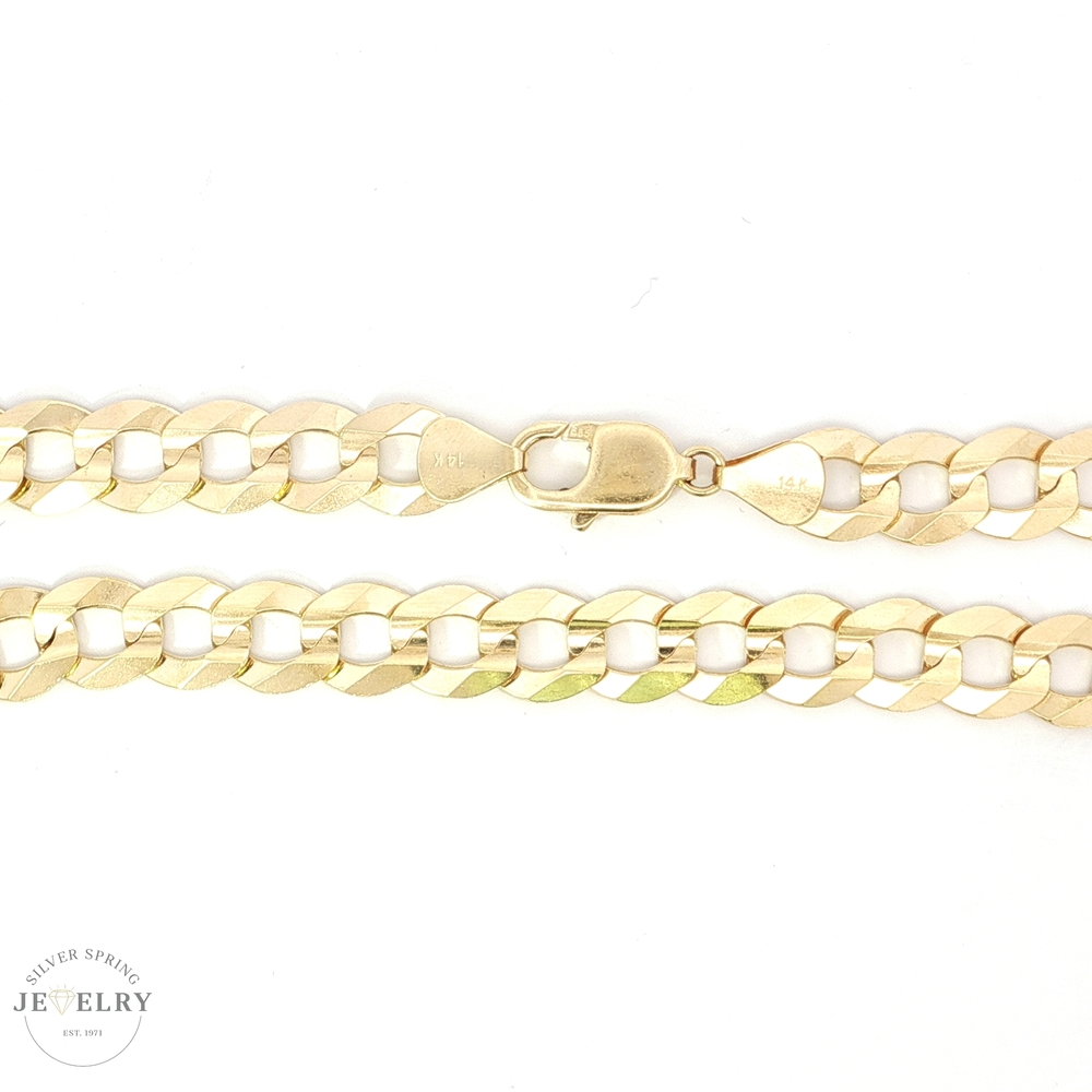 This 14k Yellow Gold Curb Link Chain, measuring 11mm in width and 24 inches in length, is an exquisite jewelry piece that radiates sophistication. The robust curb link design showcases a universally appealing golden gleam. Weighing 71.5 grams, it offers a substantial feel against the skin. Its durable gold construction ensures long-lasting beauty and radiance, making it the perfect accessory to add a touch of elegance to any outfit.