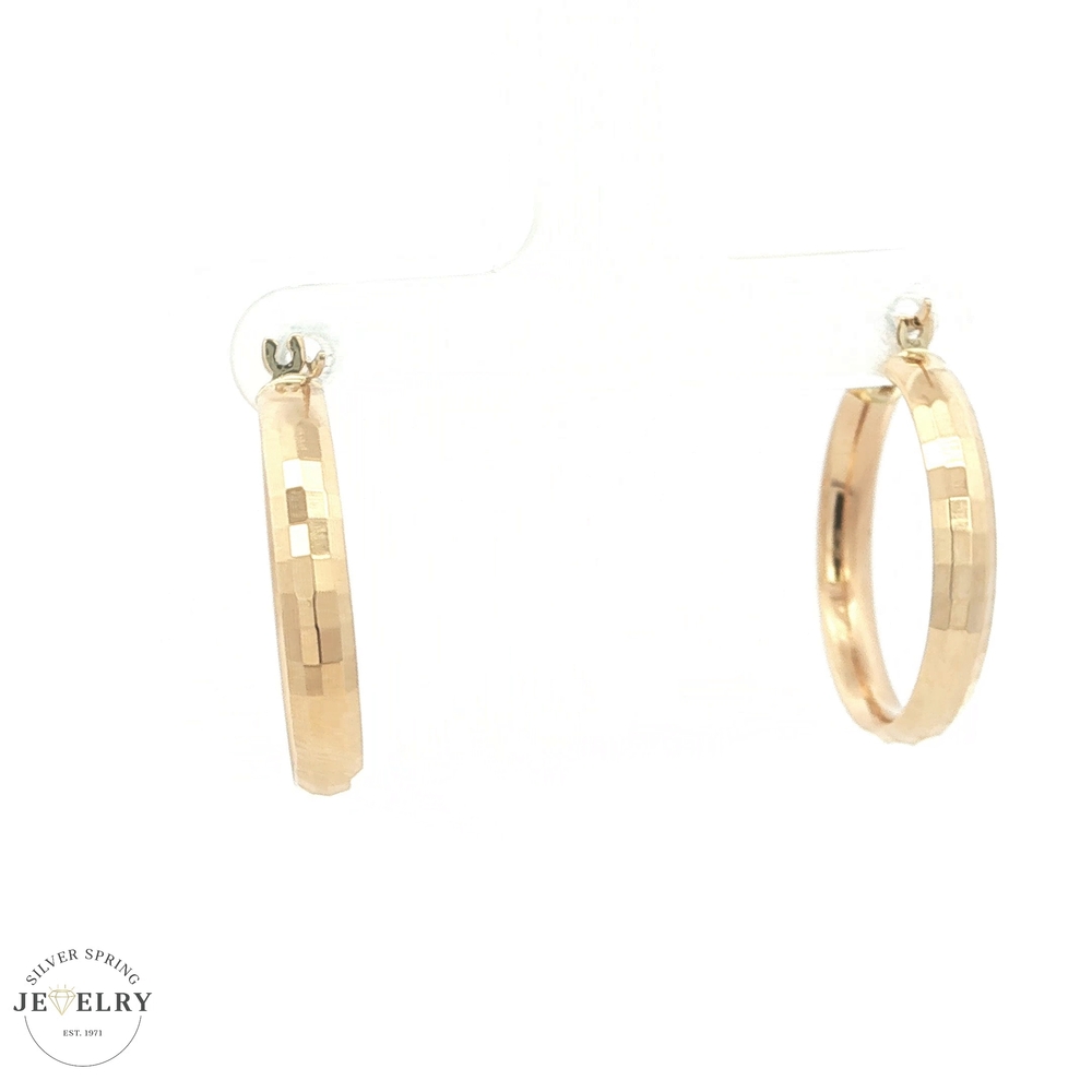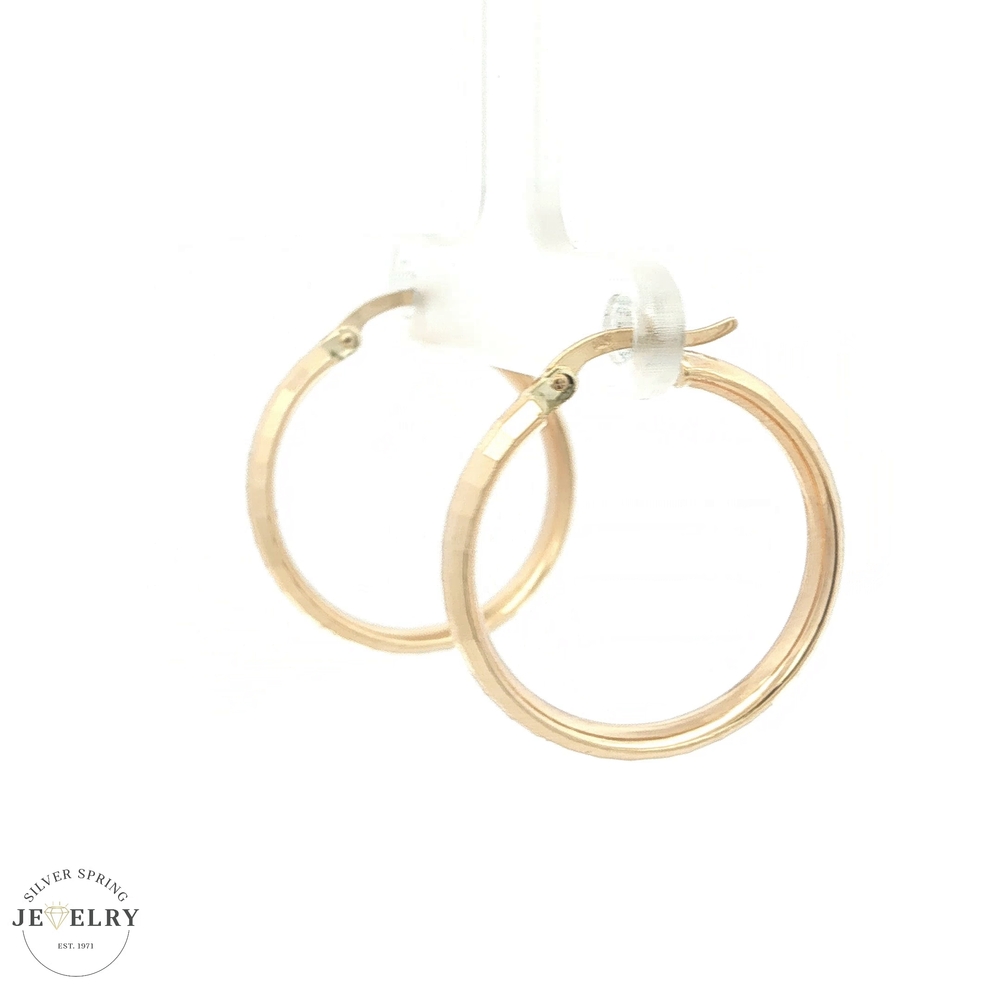 These beautifully crafted 14K yellow gold hoop earrings are a timeless piece that adds a touch of elegance to any ensemble. Featuring an intricate textured design, they exude a sophisticated charm. With a diameter of a little under an inch and a weight of 3.3 grams, these earrings offer a comfortable fit without compromising on style. Suitable for both casual and formal occasions, they make a perfect accessory for any outfit or a thoughtful gift for a loved one. Secure these lustrous hoop earrings and elevate your jewelry collection.