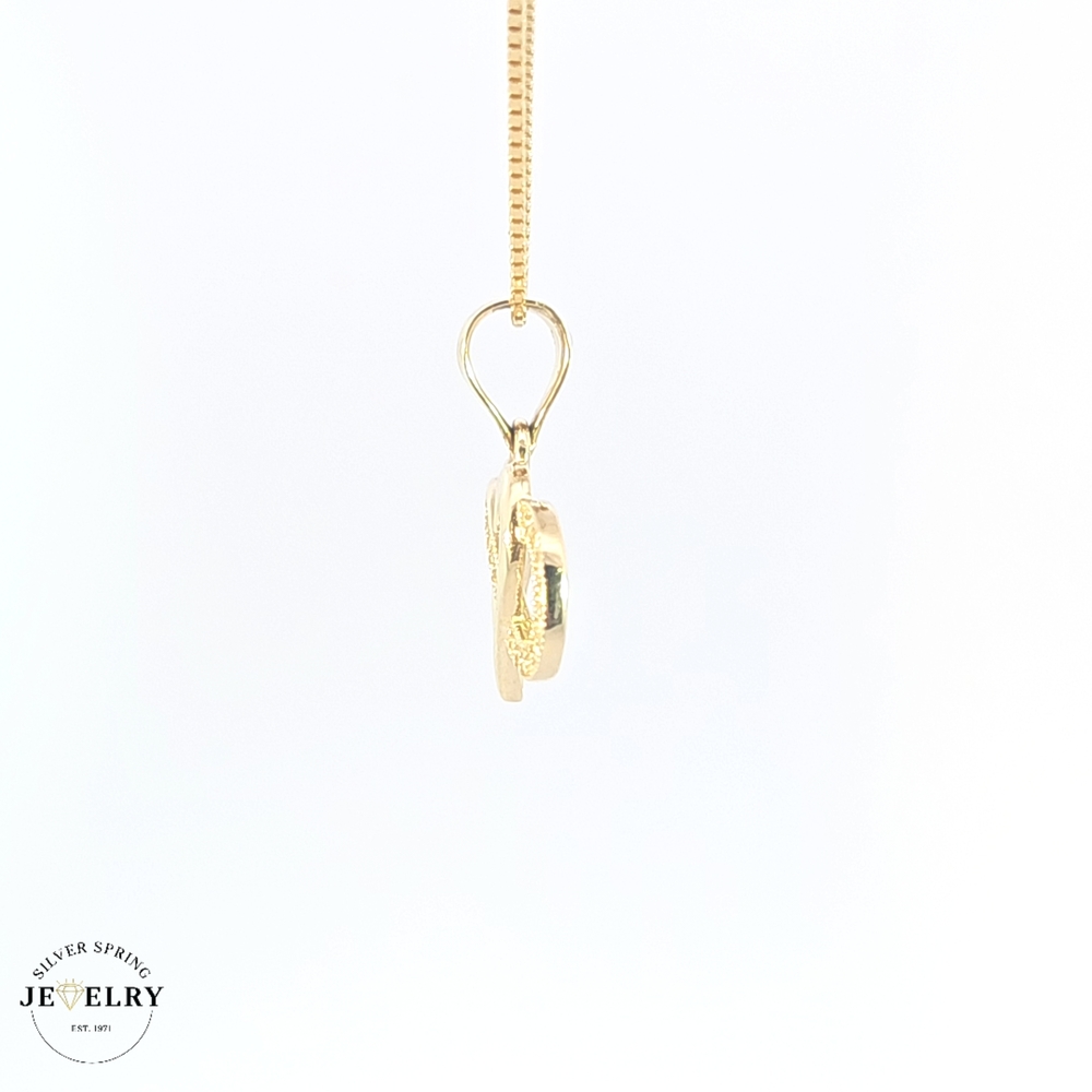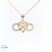 This lovely Infinity with Heart pendant, crafted from 14kt gold and weighing 2.50 grams, represents everlasting love. The pendant features a classic infinity symbol intertwined with a heart, both embellished with shimmering zirconia stones. The pendant has a width of 23mm and a length of half an inch, making it as noticeable as it is meaningful. Perfect as a gift or a personal keepsake, this piece is a stylish representation of infinite love and affection.