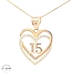This exquisite 14kt double heart Quinceañera pendant weighs 4.20 grams. Measuring 22mm wide and 1 inch long, it is a perfect balance of elegance and style. The pendant is embellished with sparkling zirconia, adding a touch of brilliance. An ideal gift to celebrate a girl’s fifteenth birthday, this pendant not only signifies a rite of passage but also adds sophistication and charm to her look.