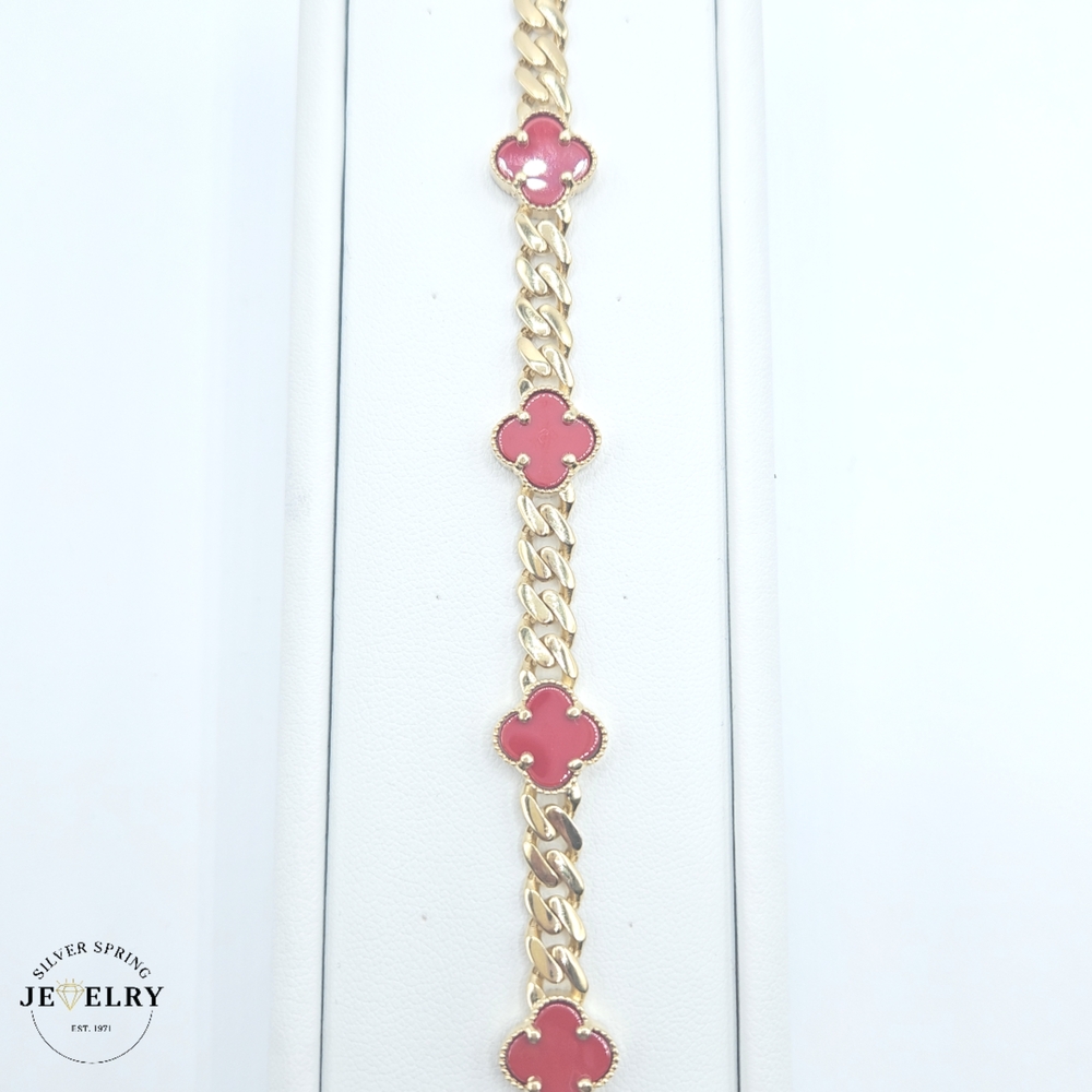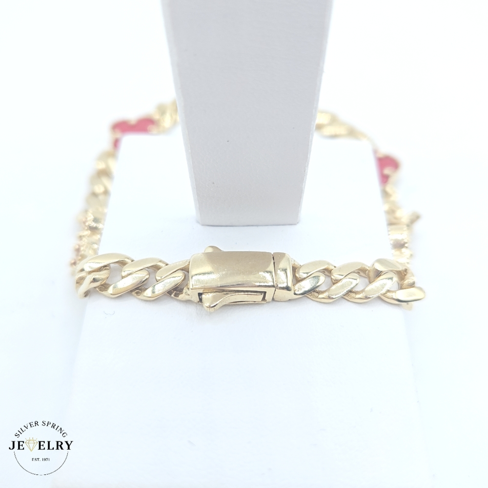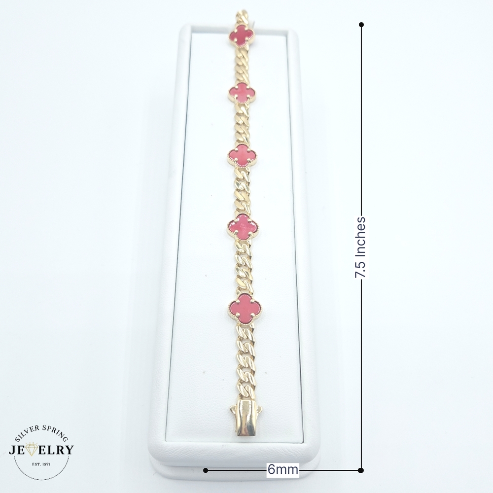 The striking Red Clover Cuban Link Hollow, beautifully crafted in pure 14kt gold, weighs just 13.4 grams, ensuring comfortable daily wear. At a width of 6mm wide a 7 inches long, it showcases a seamless blend of sophistication and modern style. The Monaco clasp ensures secure fastening while adding to the aesthetic appeal. This enticing Cuban link is the perfect blend of luxury and versatility for the discerning customer.