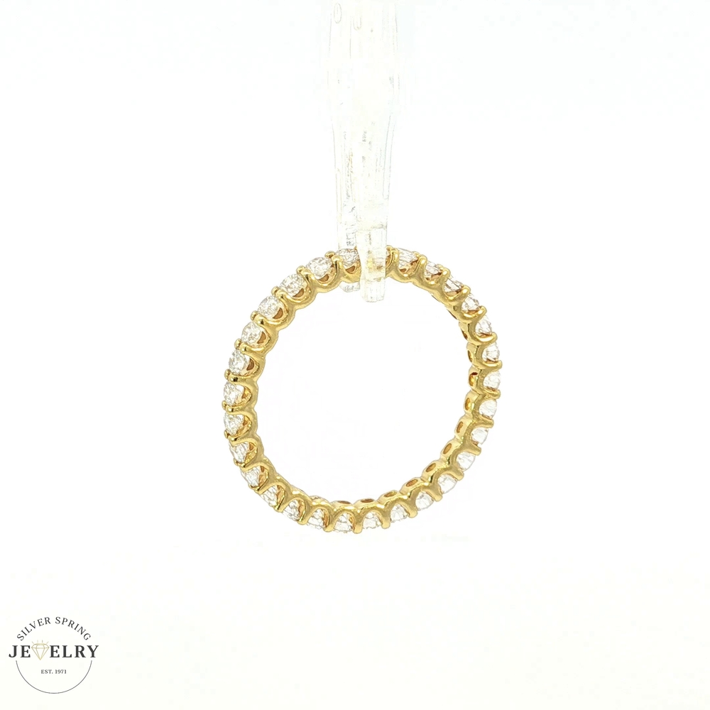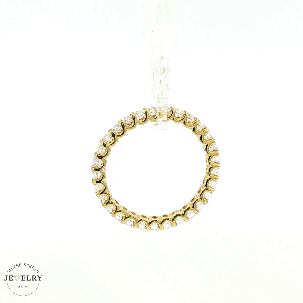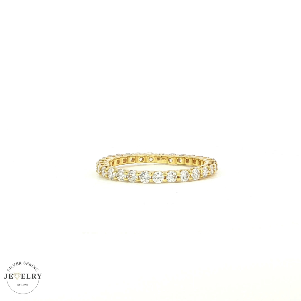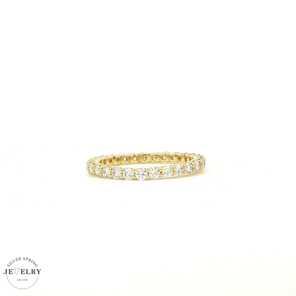 This stunning 14k yellow gold eternity ring features 29 round brilliant cut lab-grown diamonds, symbolizing eternal love and commitment. It has a total diamond weight of 1.57 carats, with all diamonds being F-colored and having a clarity rating of VS1, which ensures optimal sparkle. Each diamond is guaranteed to be of superior quality, ethically crafted, and environmentally responsible. The ring is crafted to perfection in a size 7.5, making it an excellent choice for those seeking a blend of remarkable elegance and sustainability. This piece truly embodies classic design with a modern twist.