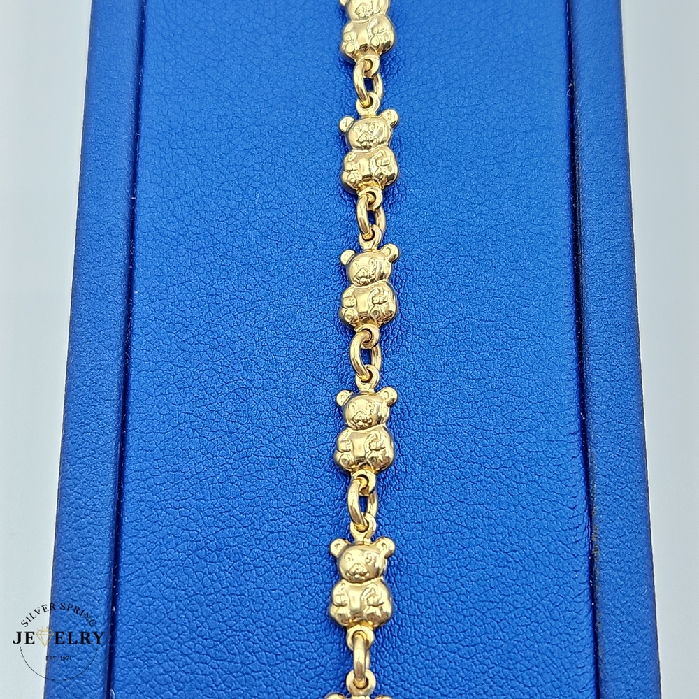 This 14kt piece of Teddy Bear jewelry hits a unique style quotient, weighing a solid 7.40 grams. Crafted from 14 karat gold, renowned for its radiant luster & high durability. With a width of 6mm, it's finely detailed yet robust. Boasting a comfortable length of 7 inches, the piece is ideal for daily use & special occasions alike. These charming Ornaments offer both cute aesthetics and absolute quality – sure to add a delightful touch to your collection.
