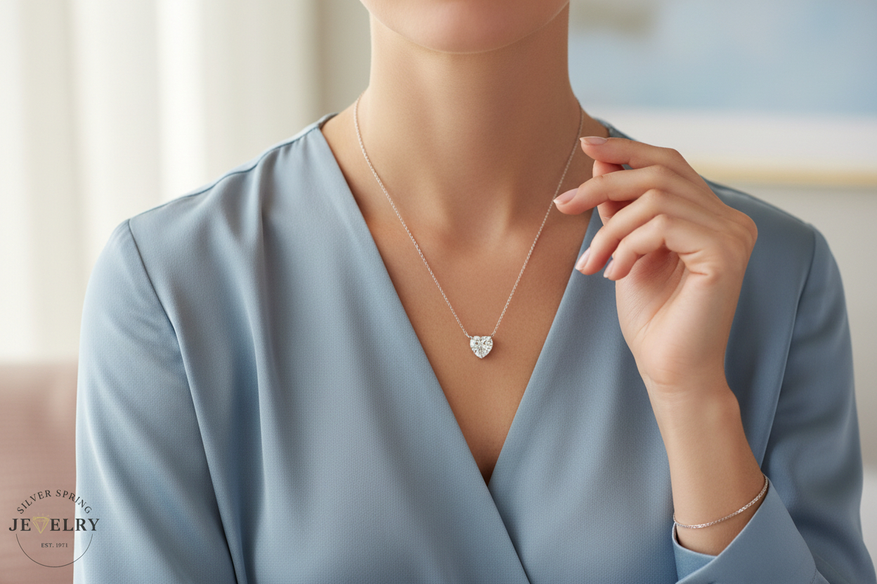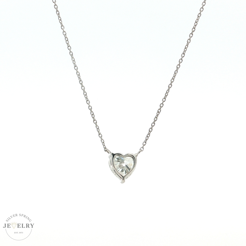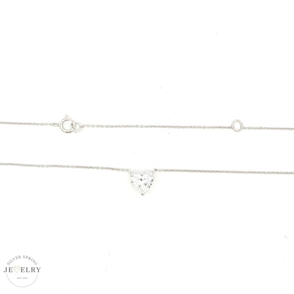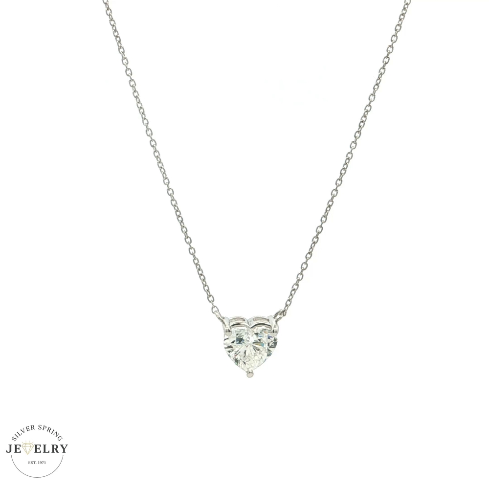 Experience luxury with this 14K white gold necklace, featuring a stunning 1.03ct E VS1 heart-cut lab-grown diamond. With an 18-inch cable link, it illustrates exquisite craftsmanship. The fine 1.4g gold necklace is not only a symbol of love but also the pinnacle of sophisticated elegance. This ethically sourced, lab-grown diamond is a perfect blend of sustainable luxury and timeless beauty. It's a beautiful piece to hold close to your heart.