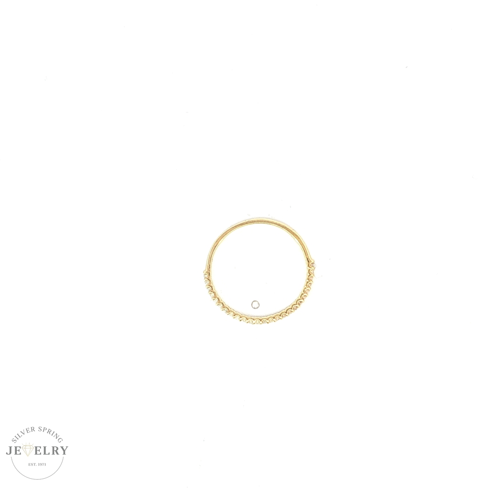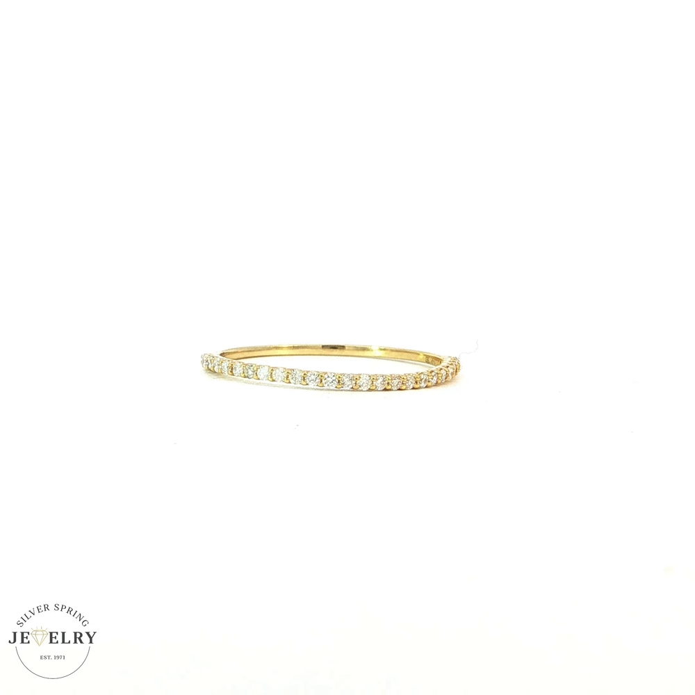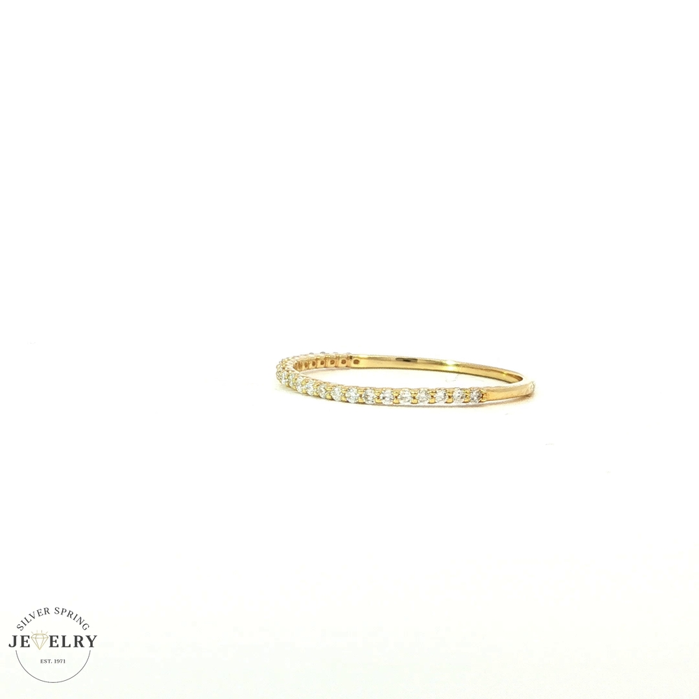 This exquisite wedding band is made of 14K yellow gold and weighs a light 0.7g. Available in a size 7.25, it's adorned with 25 dazzling stones, a total of 0.16tcw Lab-grown diamonds. A blend of tradition and innovation, lab-grown diamonds offer the same beauty as mined diamonds. Their sustainable production makes them an environmentally friendly choice. This elegant band symbolizes a link of love, perfect for celebrating a lifetime of shared memories.
