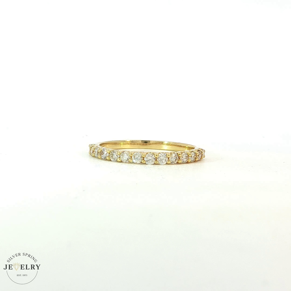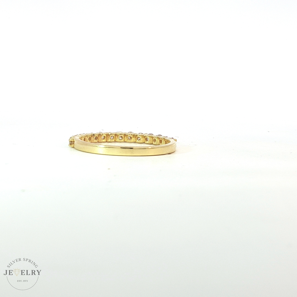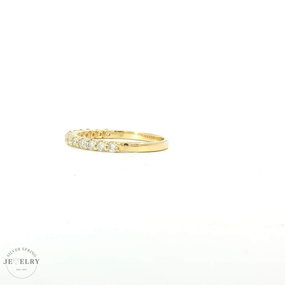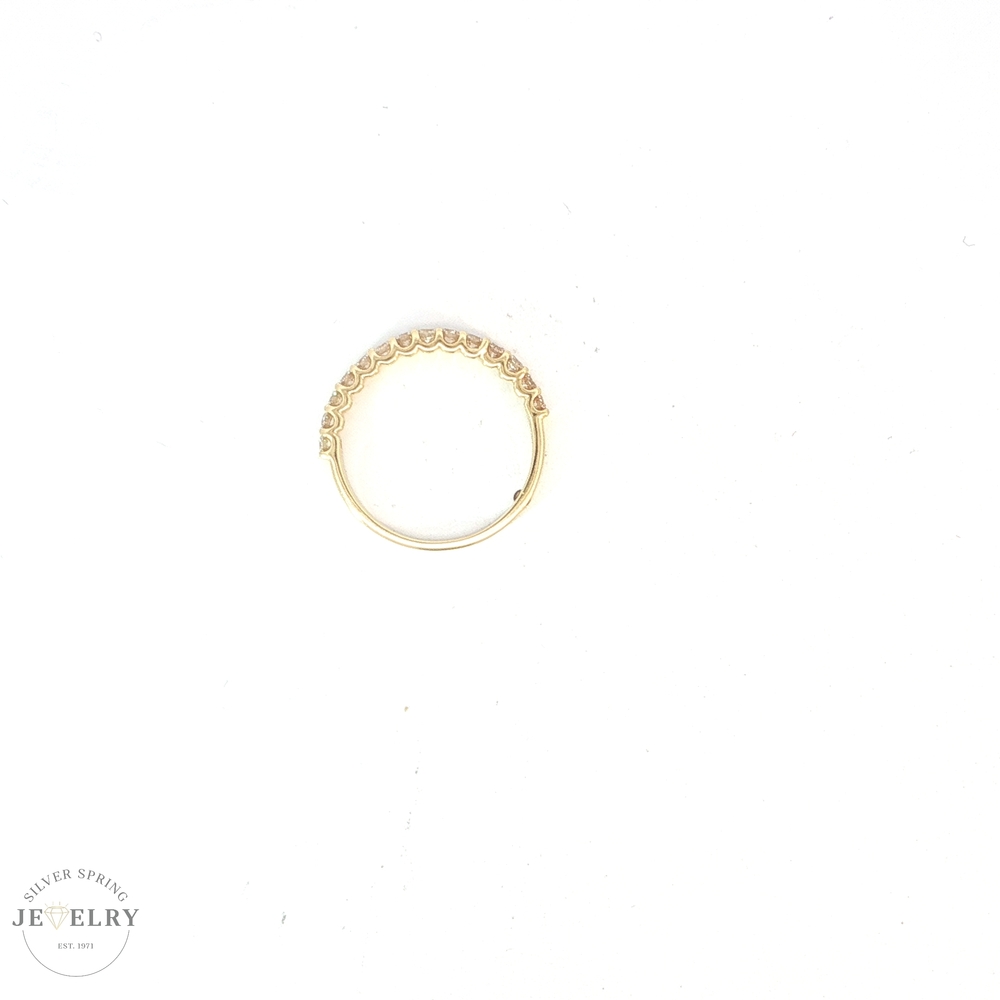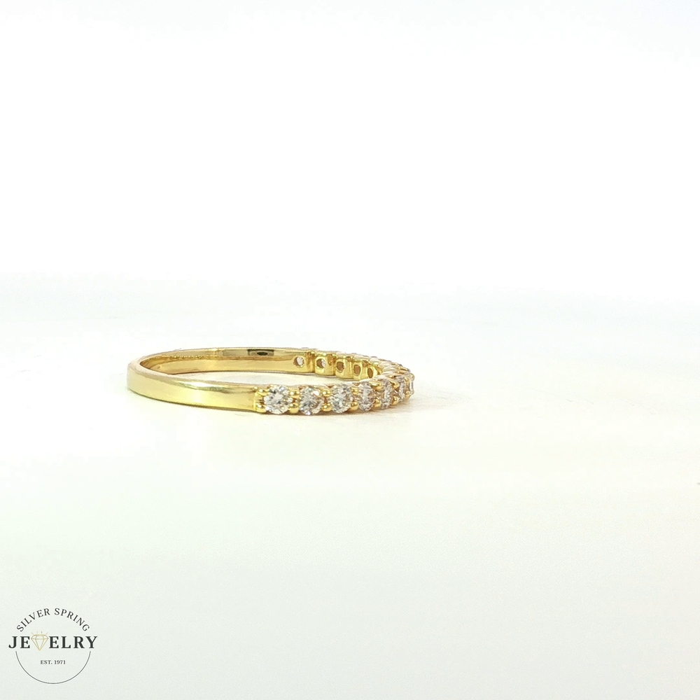 This elegant size 7 wedding band features a half eternity design set with 14 lab-grown diamonds. Crafted from 14K gold and weighing 1.6g, it boasts a total carat weight (tcw) of 0.44. Lab-created diamonds offer identical properties to mined gems, making this band the perfect blend of modern science and timeless romance. Experience unparalleled brilliance and beauty with your forever reminder of eternal love.