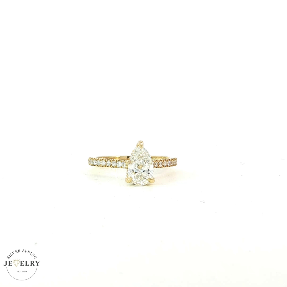 A stunning 1.02ct E VVS2 Lab-grown diamond (IGI LG750530901), complemented by 28 accent lab-grown diamonds totaling 0.32ct TDW (1.34ct total). Beautifully set in 14k yellow gold weighing 2.5g. Available in size 7. This exceptional piece blends affordability, sustainability, and elegance.