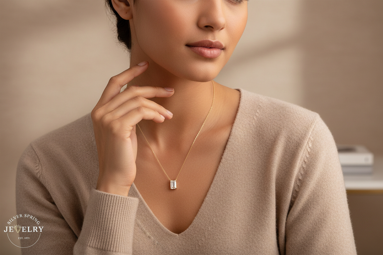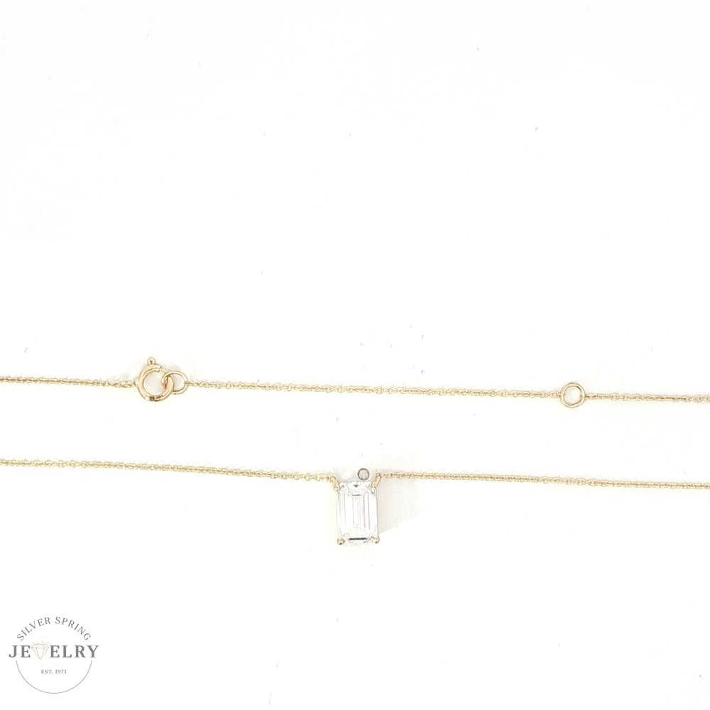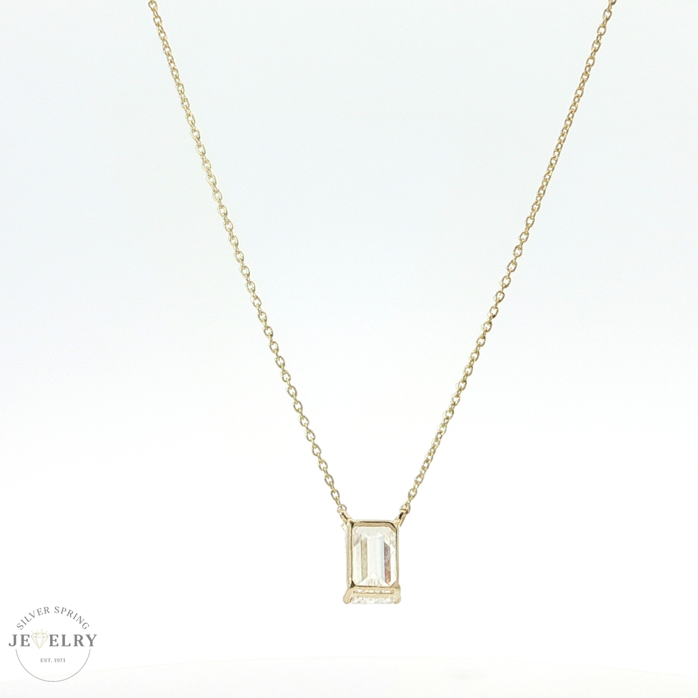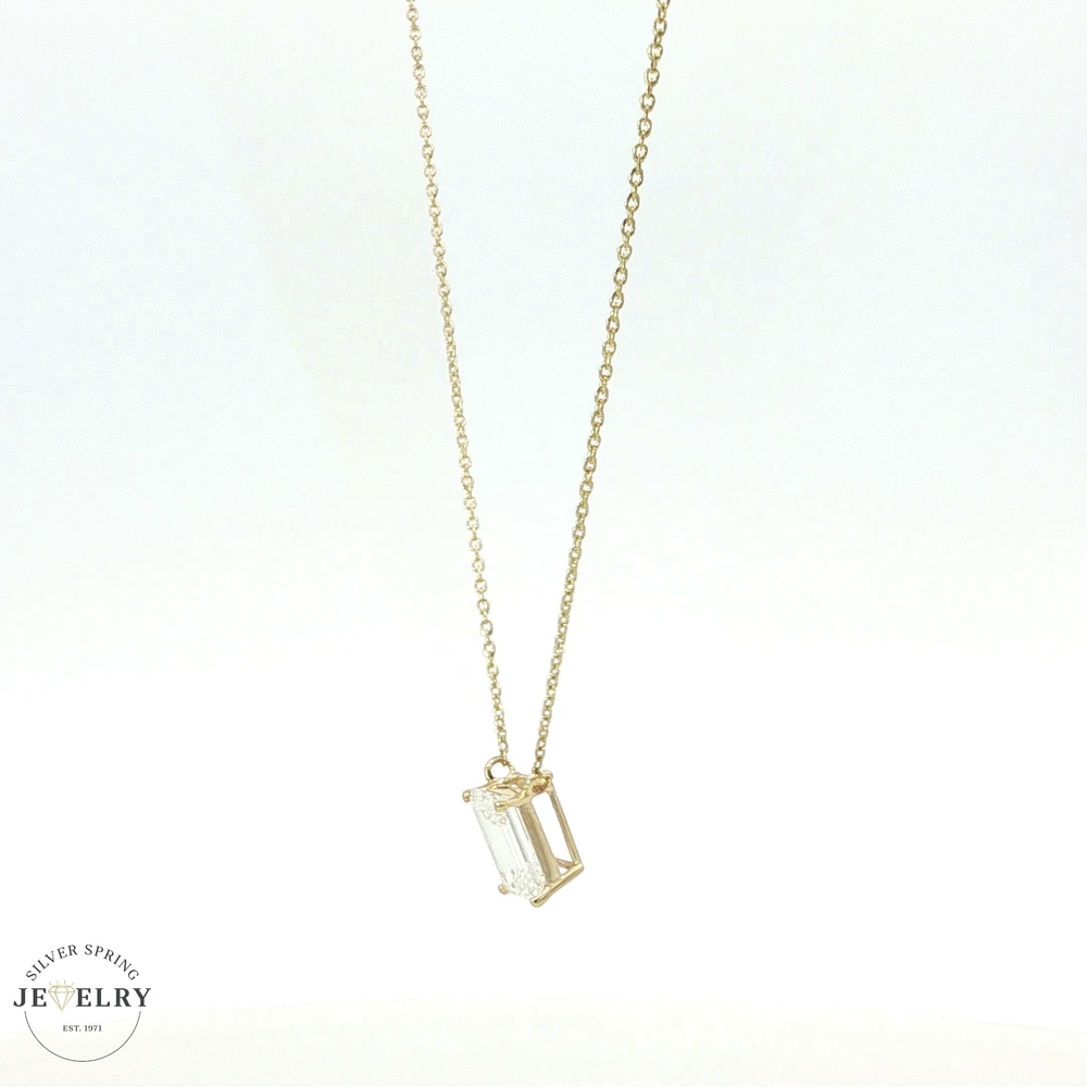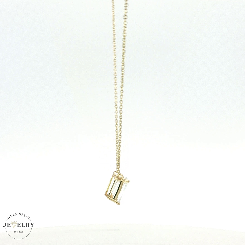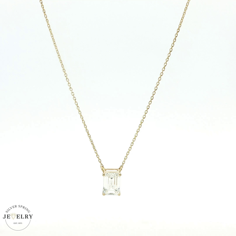 Experience luxurious elegance with this 14K yellow gold cable link necklace, featuring a single 1.15ct lab-grown Emerald-cut diamond. The diamond is of E color and VVS2 clarity, showcasing remarkable brilliance and virtually flawless quality. The necklace, with a versatile 18-inch length and a total weight of 1.4g, combines the charm of time-honored design with the ethical sourcing and advanced technology of lab-grown diamonds. This piece promises the perfect blend of subtle grandeur and sustainable luxury.