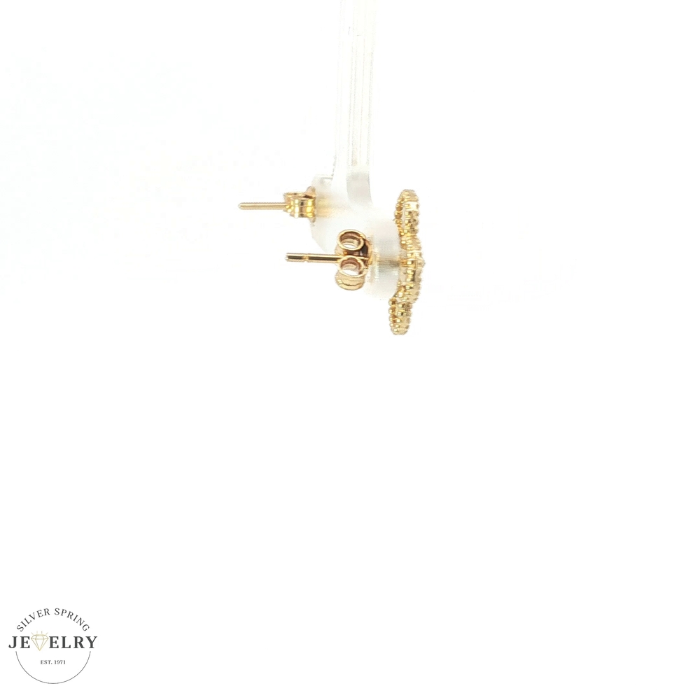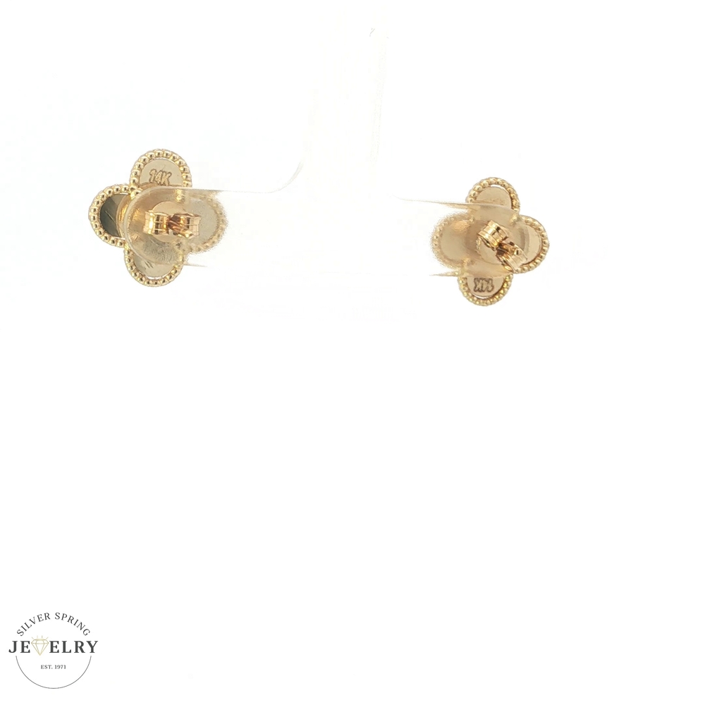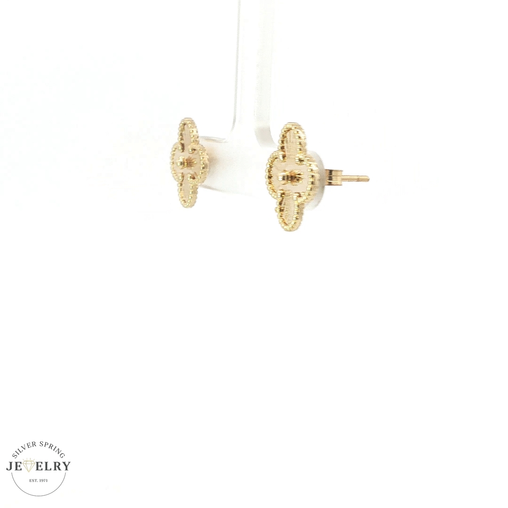 Enhance your look with these stunning 14k yellow gold stud earrings. The eye-catching 12mm clover design adds a touch of elegance and sophistication to any outfit. Made from high-quality materials, these earrings are stylish and durable, making them a must-have accessory. Weighing just 2.68 grams, they are lightweight and comfortable enough for all-day wear. Perfect for both formal and casual occasions, these earrings are a versatile addition to any jewelry collection.