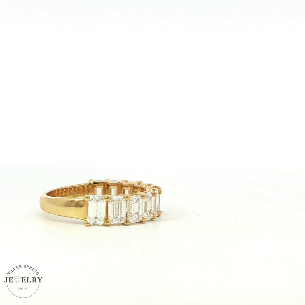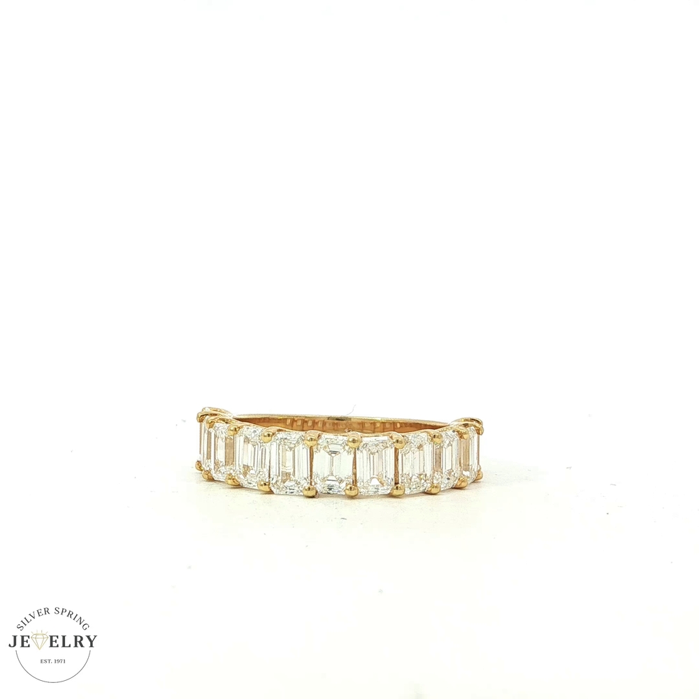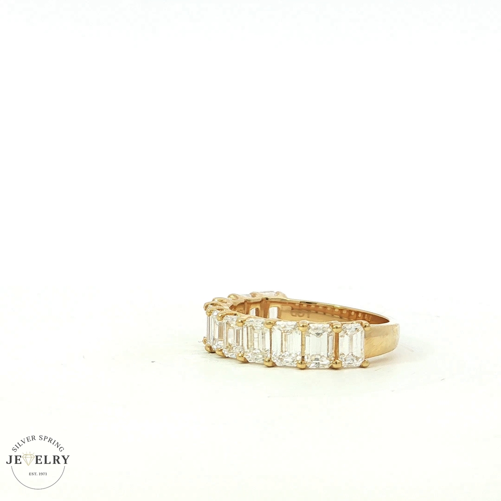 Crafted with elegance, this 14K Yellow Gold Wedding Band is a stunning display of beauty. It bears 2.85tcw of precision-cut, lab-grown diamonds set in an attractive emerald-cut design. Weighing in at 3.3g and available in size 7, this half eternity band showcases sophistication and brilliant sparkle. The lab-grown origin of the diamonds guarantees perfect clarity and high-standard gem-quality. A perfect representation of infinite love and commitment.
