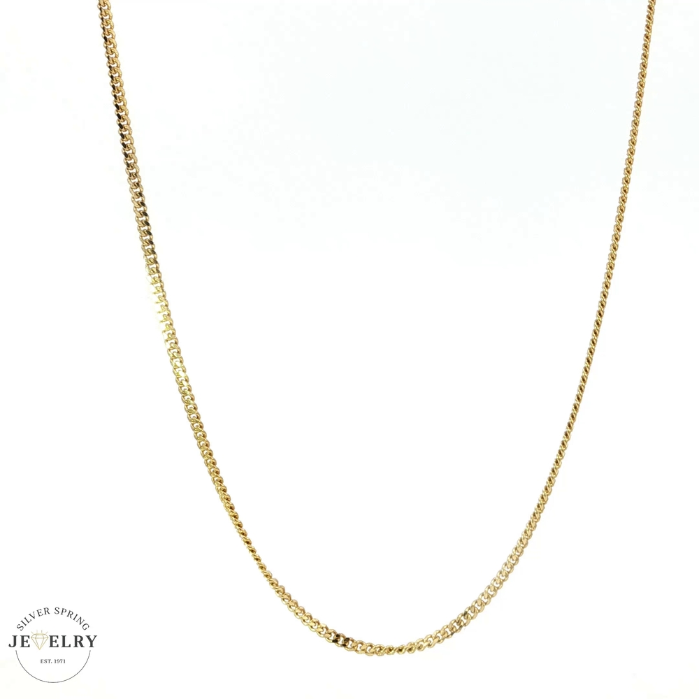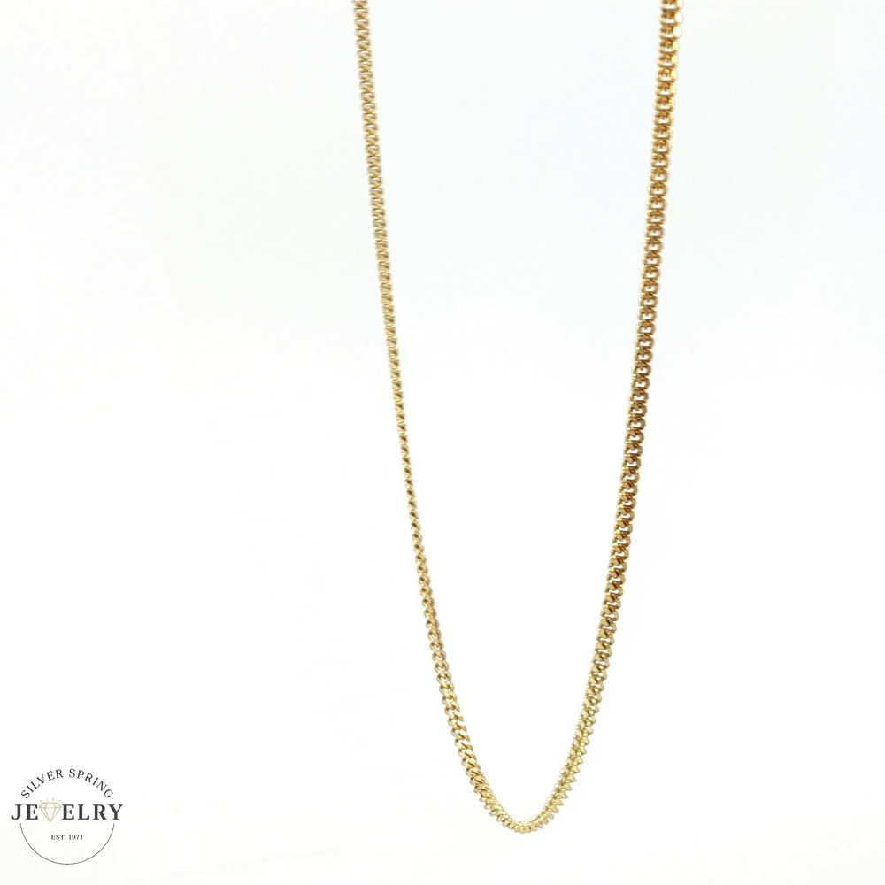 Experience superior quality and real craftsmanship with this 14K Yellow Gold Cuban Link chain. Weighing 3.5 grams and measuring 20 inches long with a thickness of 1.5mm, it makes a stylish statement. The beautiful interlocking Cuban link design gives an appealing look and offers excellent durability. Made from top-notch 14K gold, it delivers fade-resistant shine and anti-tarnish protection, giving you a long-lasting, high-end piece. This elegant, timeless chain is suitable for both men and women and suits every fashion preference.