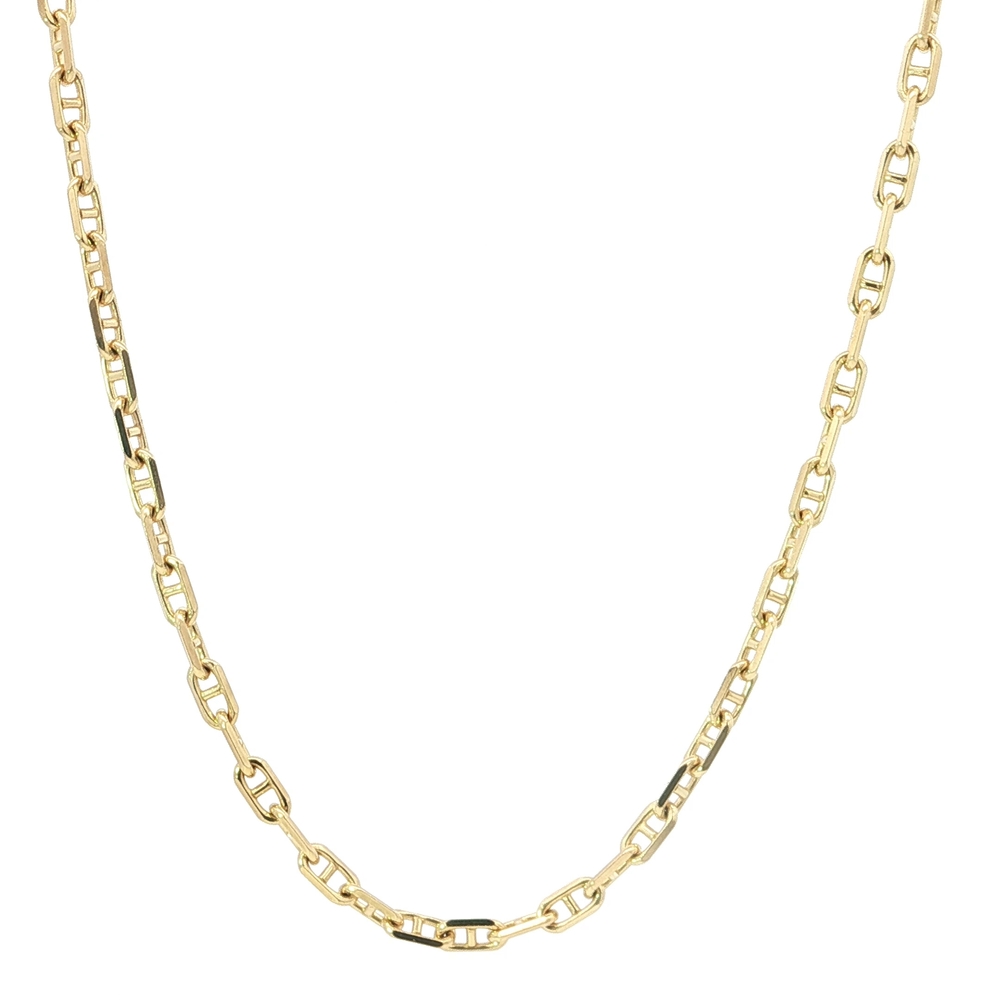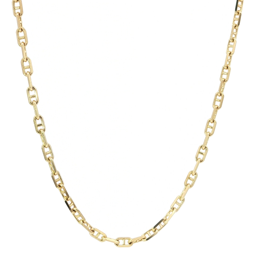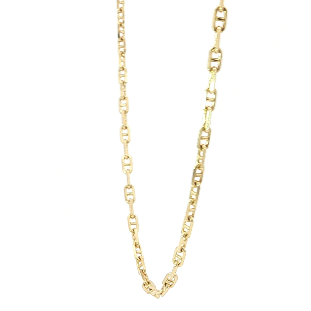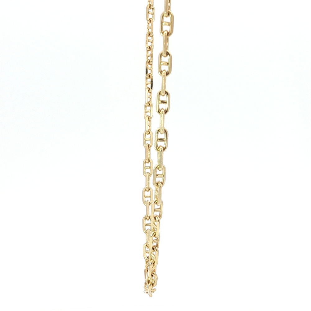 This 14K Yellow Gold Anchor Link Chain is a timeless piece of jewelry. Measuring 20 inches in length, it's elegantly weighted at 6.1 grams. The classic anchor link design is an alluring blend of sturdy practicality and sophisticated style, perfect for casual or formal wear. Its secure lobster clasp ensures that it stays in place all day. This piece symbolizes stability and strength, making it more than just a beautiful accessory, but a piece that resonates with individuality and character.