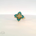 Presenting a fashion-forward 14k Yellow Gold Flower Ring. The ring showcases luxurious turquoise at the flower ends, adding a striking contrast to the elegant gold. The exquisite diamond-cut design adorns the center of the flower, adding a sparkling allure. Embellished on the centerpiece are cubic zirconia stones that lend an extra dazzle. Available in size 6.5, this 2.1-gram ring beautifully combines opulence, style, and femininity.