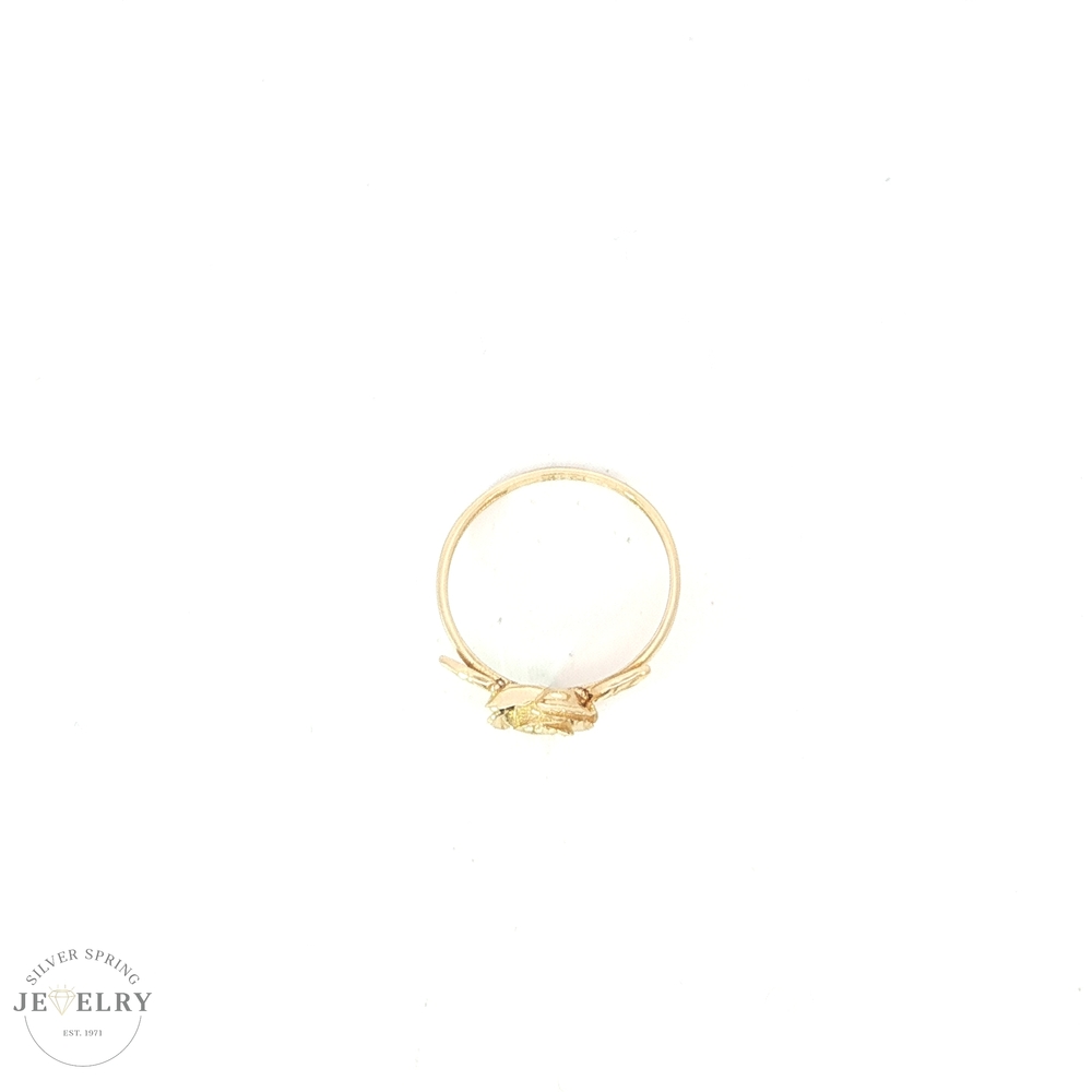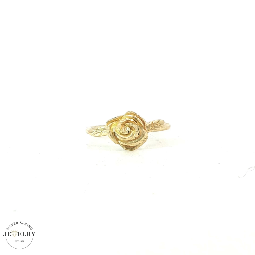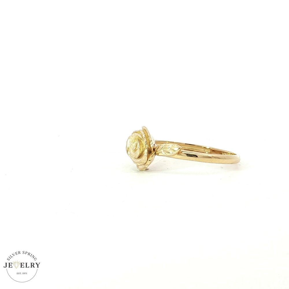 This stunning size 8 ring is expertly crafted from exquisite 14K yellow gold, weighing a modest 1.8g. Its design is inspired by a delicate rose, exuding an aura of elegance and romance. Celebrate your love with this beautiful gold ring, which displays superior craftsmanship and fine detailing. Its radiant finish adds an enchanting glow to your attire. Standing out for its elegance and subtlety, this rose ring makes a perfect addition to your jewelry collection or a heartfelt gift for a special someone.
