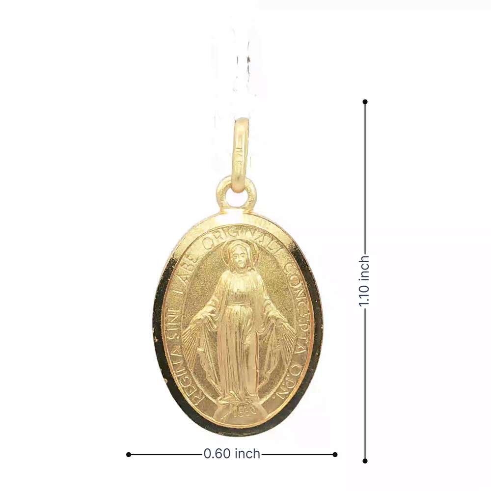 Adorn your neck with this exquisite 14K yellow gold pendant. Featuring an elegant oval design, it showcases a divine image of the Virgin Mary. With a weight of 3.9g, it measures a convenient 1in size. A perfect piece to express your faith and style in a subtle, yet distinct manner.