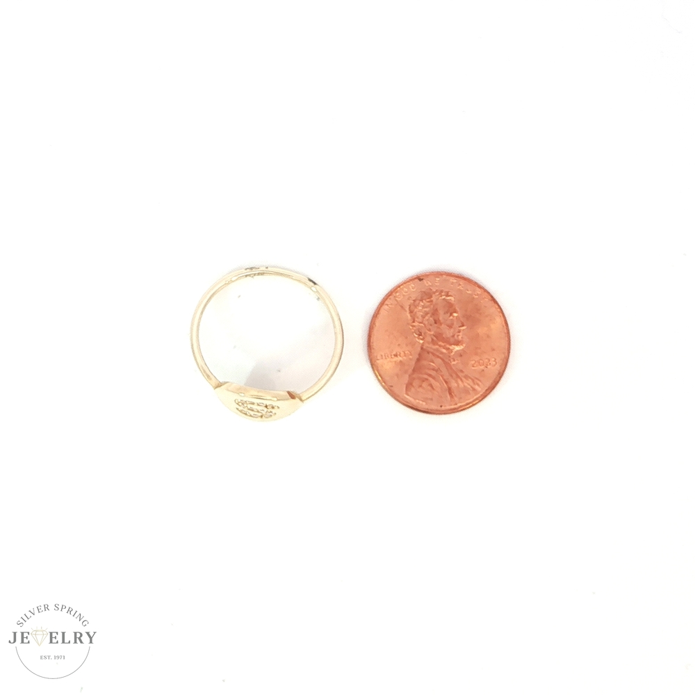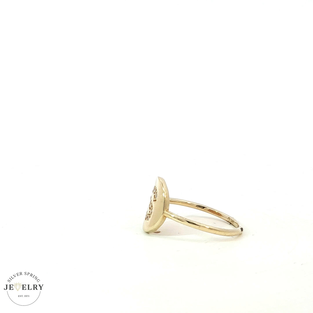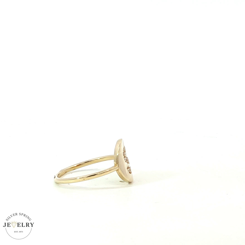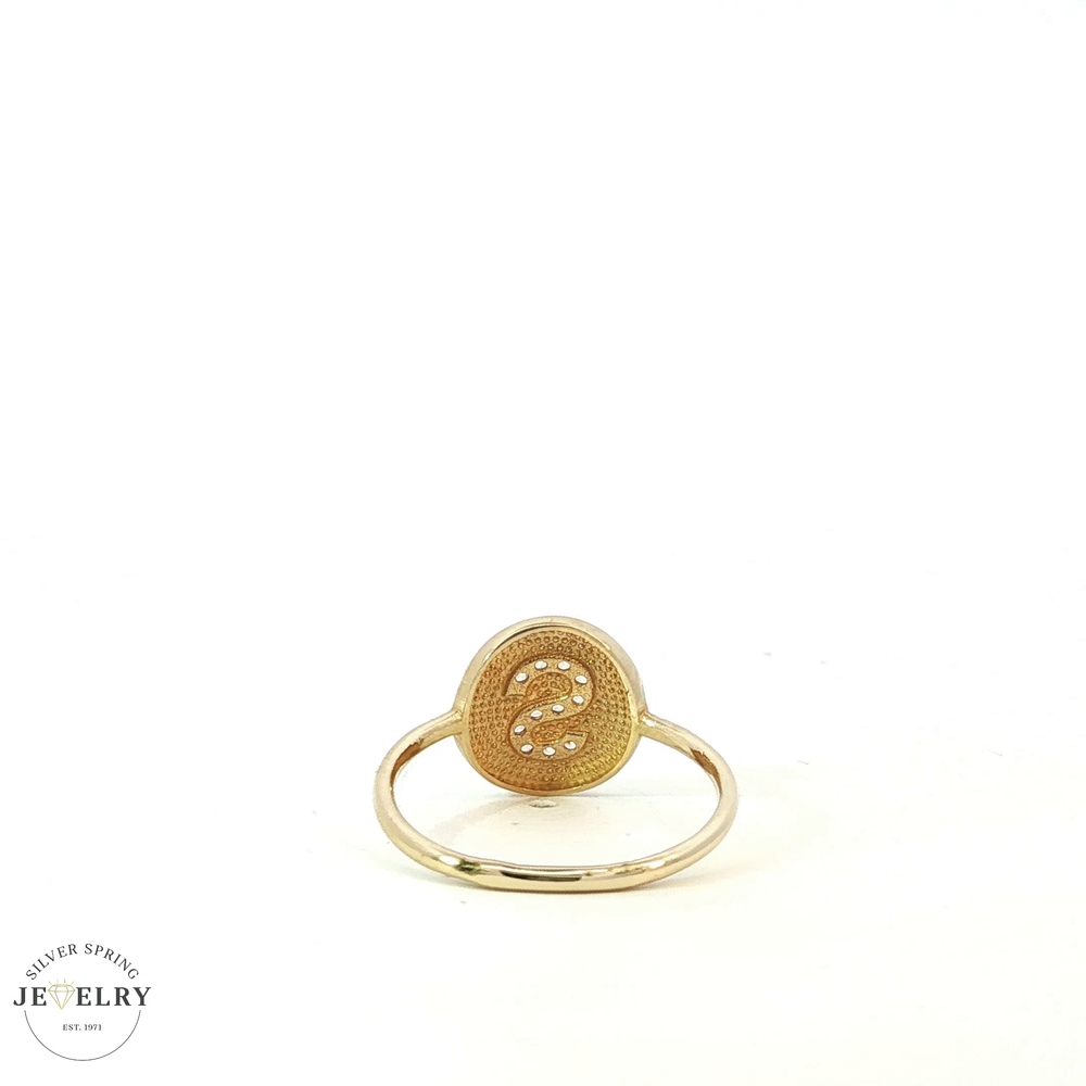 This exquisite 14k yellow gold ring features a distinct 'S' initial design, tastefully adorned with brilliant cubic zirconia stones. Weighing 1.8 grams, the ring's weight contributes to its premium look and feel. It's available in a size 7, perfectly suited to make a bold personal statement or offer as a thoughtful gift. This 'S' initial ring is an outstanding blend of personal symbolism and stylish design.