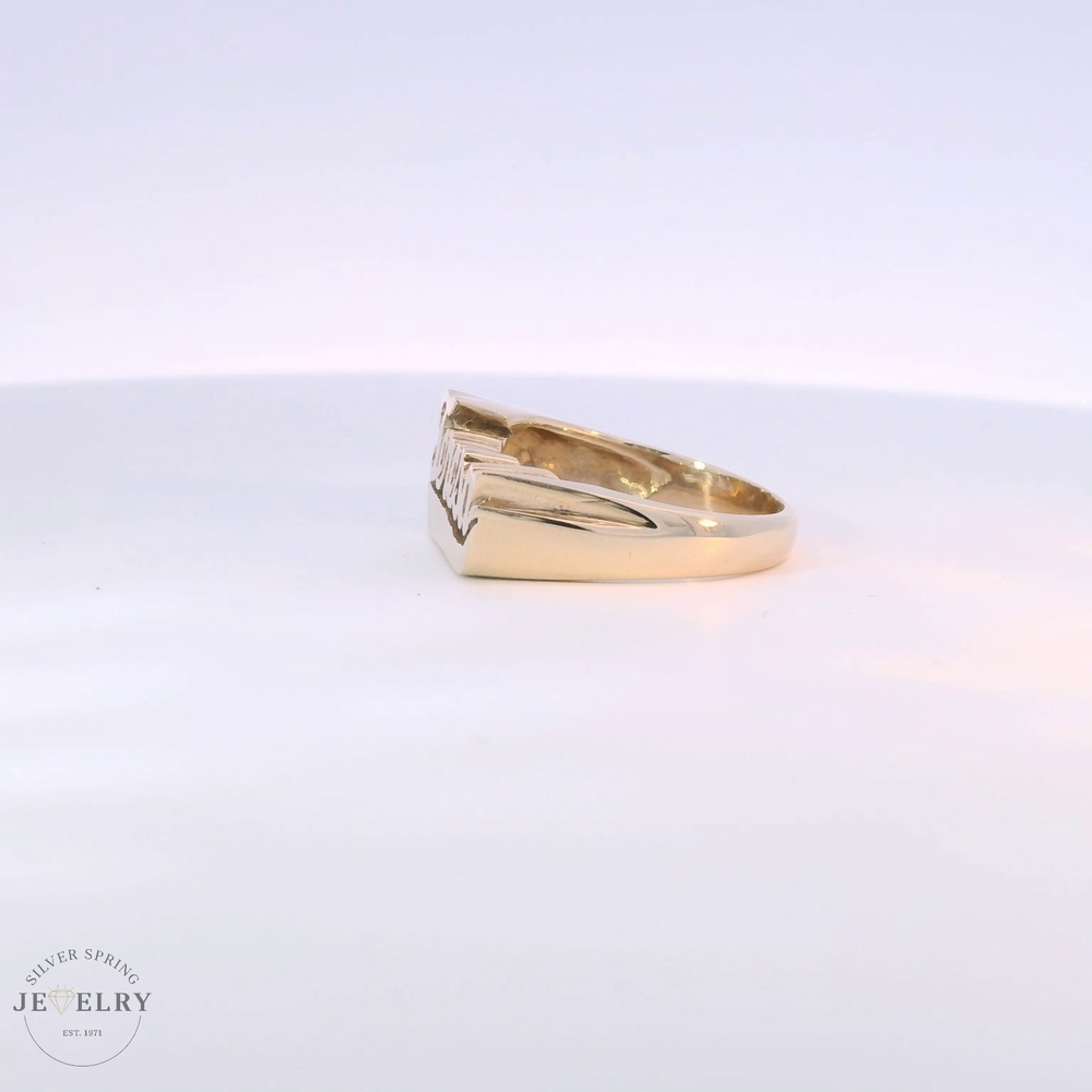 This exquisite 14k Yellow Gold Teresa Name Ring, weighing 8.60 grams, is a stylish and meaningful piece of jewelry. Crafted with careful attention to detail, it proudly features the name Teresa. This personalized accessory can be an impressive gift or a special treat for oneself. The quality gold ensures longevity, while the intricate design enhances its aesthetic appeal. The radiant yellow gold perfectly complements the elegant lettering of the name.