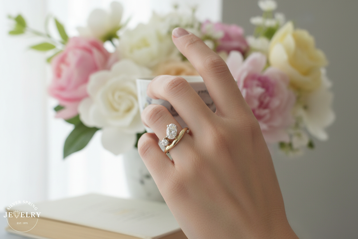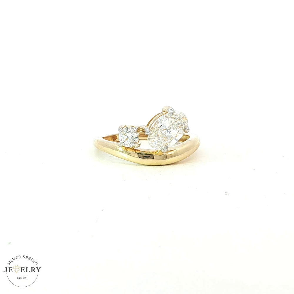 Presenting a stunning 14K yellow gold, size 7 toi et moi engagement ring, set with a 1.04ct total carat weight of lab-grown diamonds. The diamonds include an impeccably crafted D-coloured, VS1-clarity oval diamond and a round brilliant cut (RBC), both exhibiting exceptional shine and brilliance. This lab-grown diamond ring, weighing 2.3 grams, symbolizes two souls becoming one, making it the perfect choice for a unique and meaningful engagement.