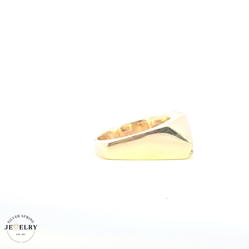 This luxurious men's ring, crafted from exquisite 14kt gold, weighs 11.30 grams. It's beautifully adorned with a 0.75ct diamond, adding a delightful sparkle to your hand. Designed with impeccable attention to detail, the ring showcases a timeless elegance. Currently available in a size 6.5, this ring offers a striking balance between classic design and modern sophistication. It's a perfect choice for anyone seeking a standout piece with a touch of lavishness.