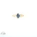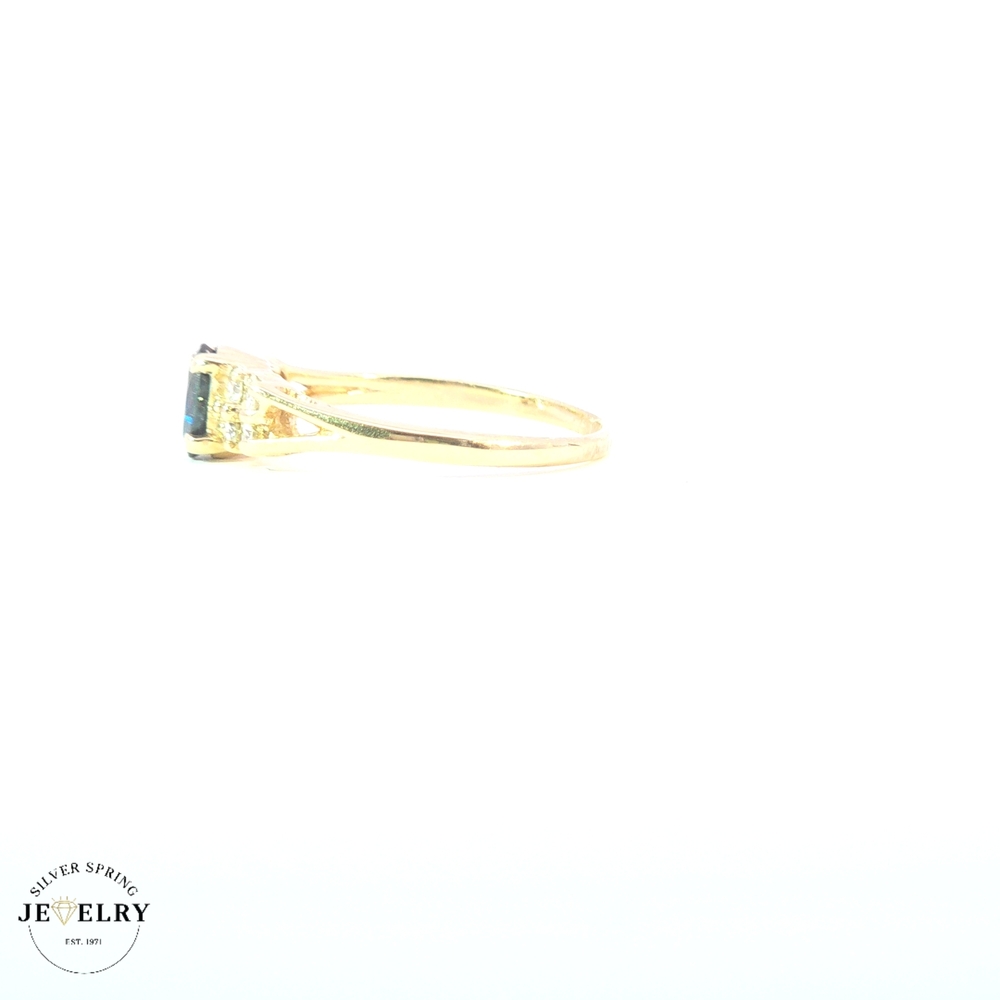 This exquisite 14kt gold ring features a stunning sapphire centerpiece surrounded by sparkling diamonds, combining elegance with timeless beauty. Weighing 2.1 grams, the ring offers a delicate yet durable design. It is a size 6, making it suitable for many wearers or perfect for gifting. Ideal for special occasions or everyday wear, this sapphire-and-diamond ring adds a touch of sophistication and luxury to any jewelry collection.