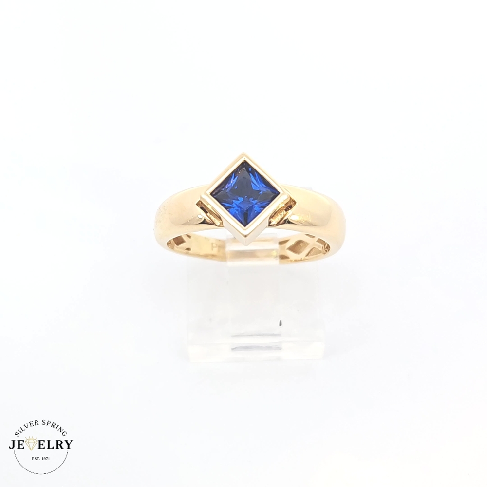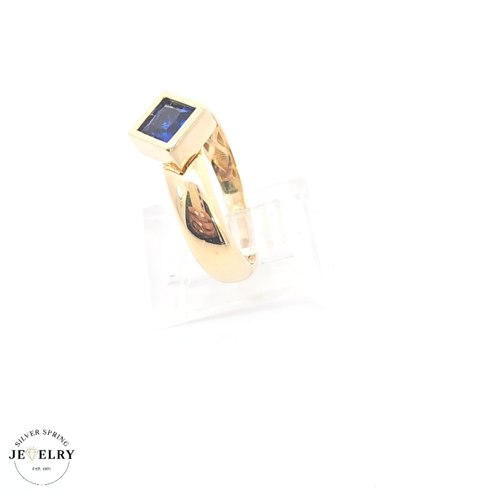 This elegant sapphire ring features a 14kt gold band weighing 3.1 grams, perfectly sized at 7.5. The deep blue sapphire gemstone adds timeless beauty and sophistication, making it ideal for daily wear or special occasions. Crafted with quality and durability, this ring combines classic design with lasting value. Perfect as a gift or a personal treasure, it offers both style and substance in one stunning piece.