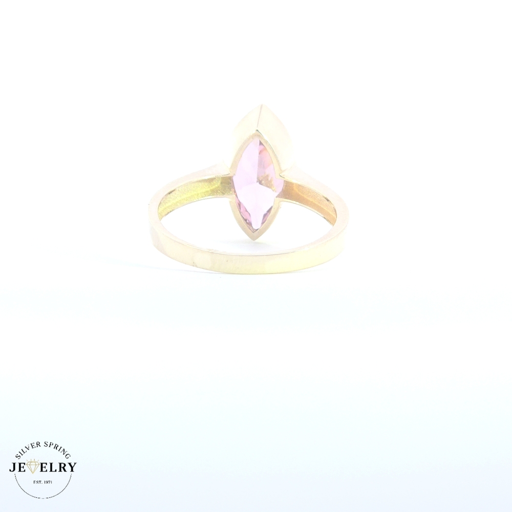 Display your birth month or add a stunning touch to your style with this sumptuous Birthstone Tourmaline Ring. Immaculately crafted from 14k gold, the ring weighs approximately 3.5 grams, ensuring a substantial feel and durability. The breathtaking tourmaline gem is of unrivalled quality, offering a captivating allure in the ring's bezel. With its size 7 fitting, it sits comfortably on most women's fingers and would make an exquisite personal accessory or sentimental gift for a loved one.