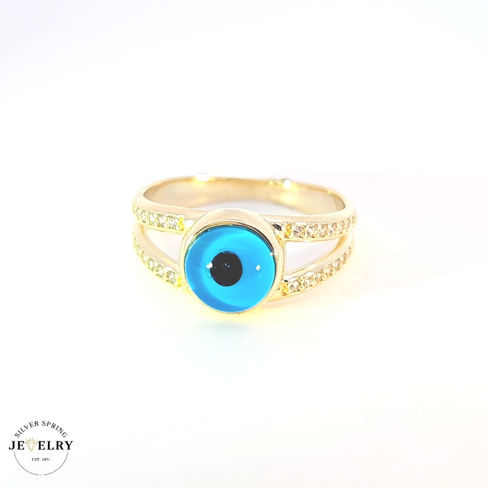 Get protected with this striking Blue Evil Eye Ring, a symbol for warding off negativity. Made from high-quality 14kt gold, the ring weighs a comfortable 3.5 grams and comes in a universal size 7. It's elegantly enhanced with sparkling zirconia, adding a touch of luxury. This trendy accessory combines a traditional belief with a modern look. It’s not just a piece of jewelry; it's your personal guardian. Order yours now and step into a world of style and protection.