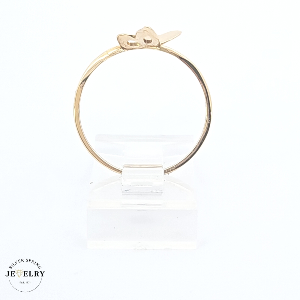 Discover a beautiful accessory with this 14kt butterfly ring, a symbol of transformation and grace. Tailored in a size 9, this ring is lightweight and comfortable for everyday wear, weighing in at a mere 1.10 grams. It features distinct craftsmanship that blends well with both formal and casual outfits. Whether for a gift or a self-reward, this butterfly ring reflects elegance with its delicate design. Don't miss out on such a unique and charming piece of jewelry.