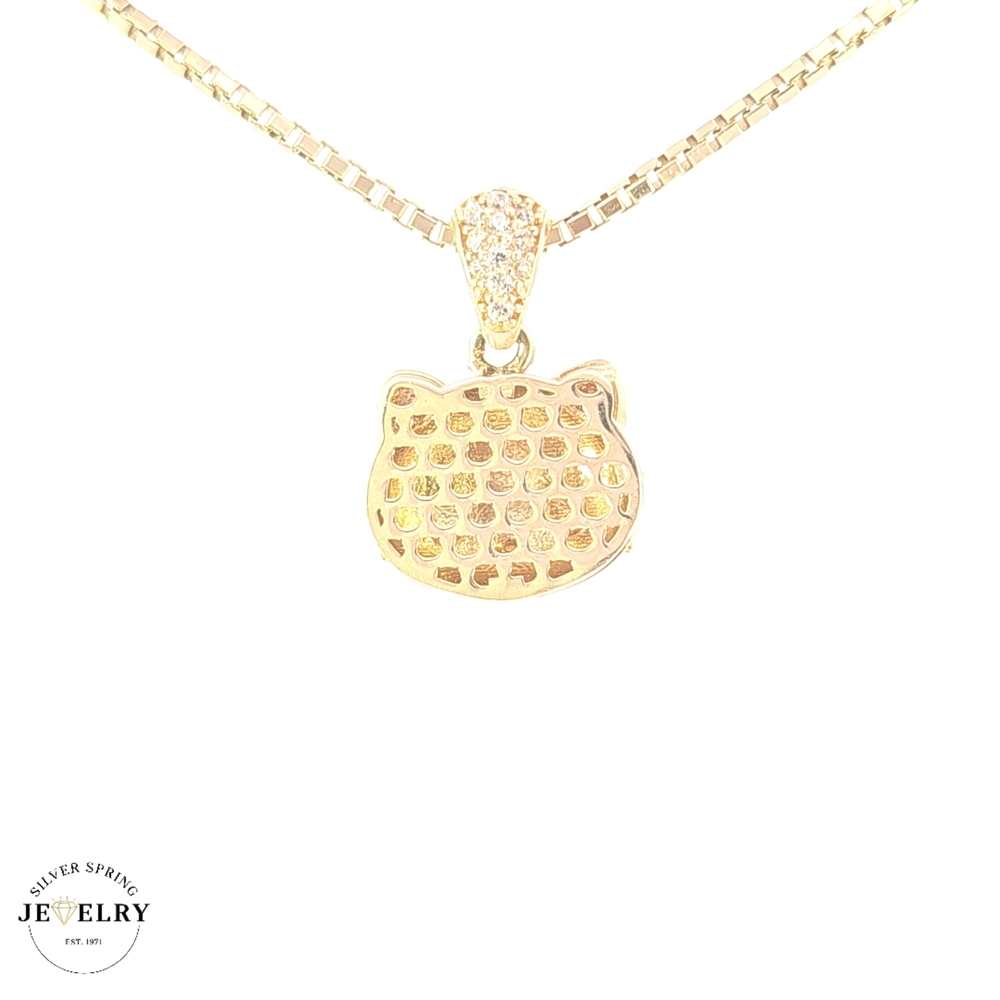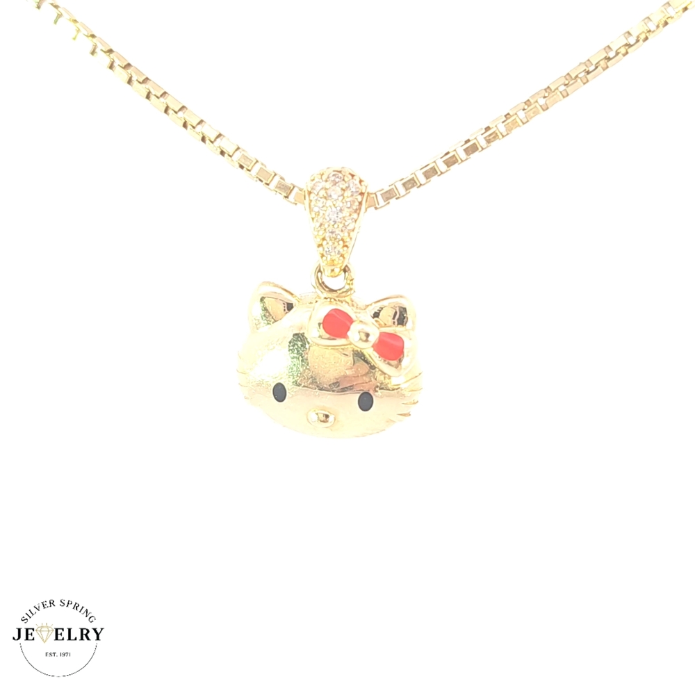 This striking Hello Kitty pendant is made of 14kt gold and weighs 2.00 grams. Measuring 12mm wide and 0.50 inches long, the pendant is beautifully compact. Adorned with high-quality zirconia, it effortlessly adds a touch of sparkle and sophistication to any outfit. Its unique design makes it an ideal choice for Hello Kitty enthusiasts or those who appreciate chic yet playful jewelry.