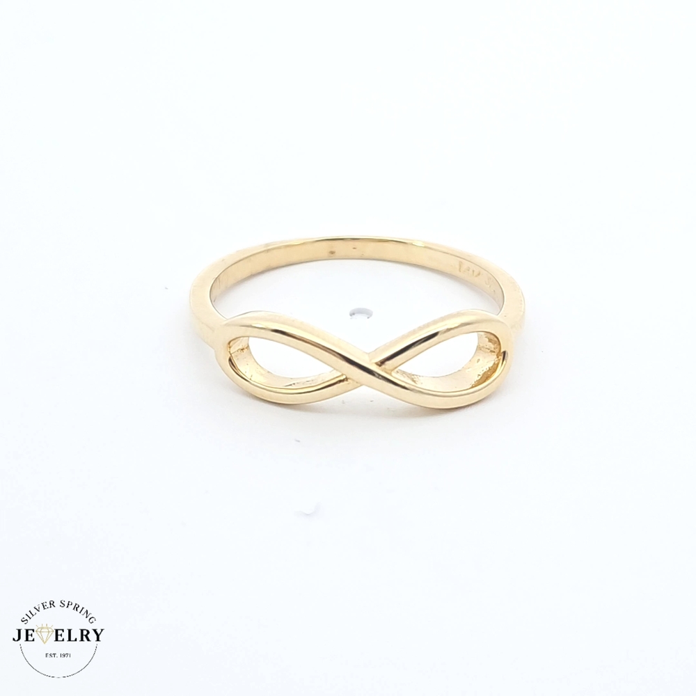 Showcase your elegant style with this stunning Infinity Fancy Ring. Skillfully crafted from highly durable 14kt gold, it weighs 2.30 grams, offering an ideal balance of heft and comfort. This exquisite piece features an intricate infinity design, symbolizing endless love or possibility. Sized at 8.5, it balances beautifully between subtle charm and bold statement. This ring adds an extra touch of luxury and sophistication to any ensemble or occasion, making it a perfect gift or addition to your jewelry collection.