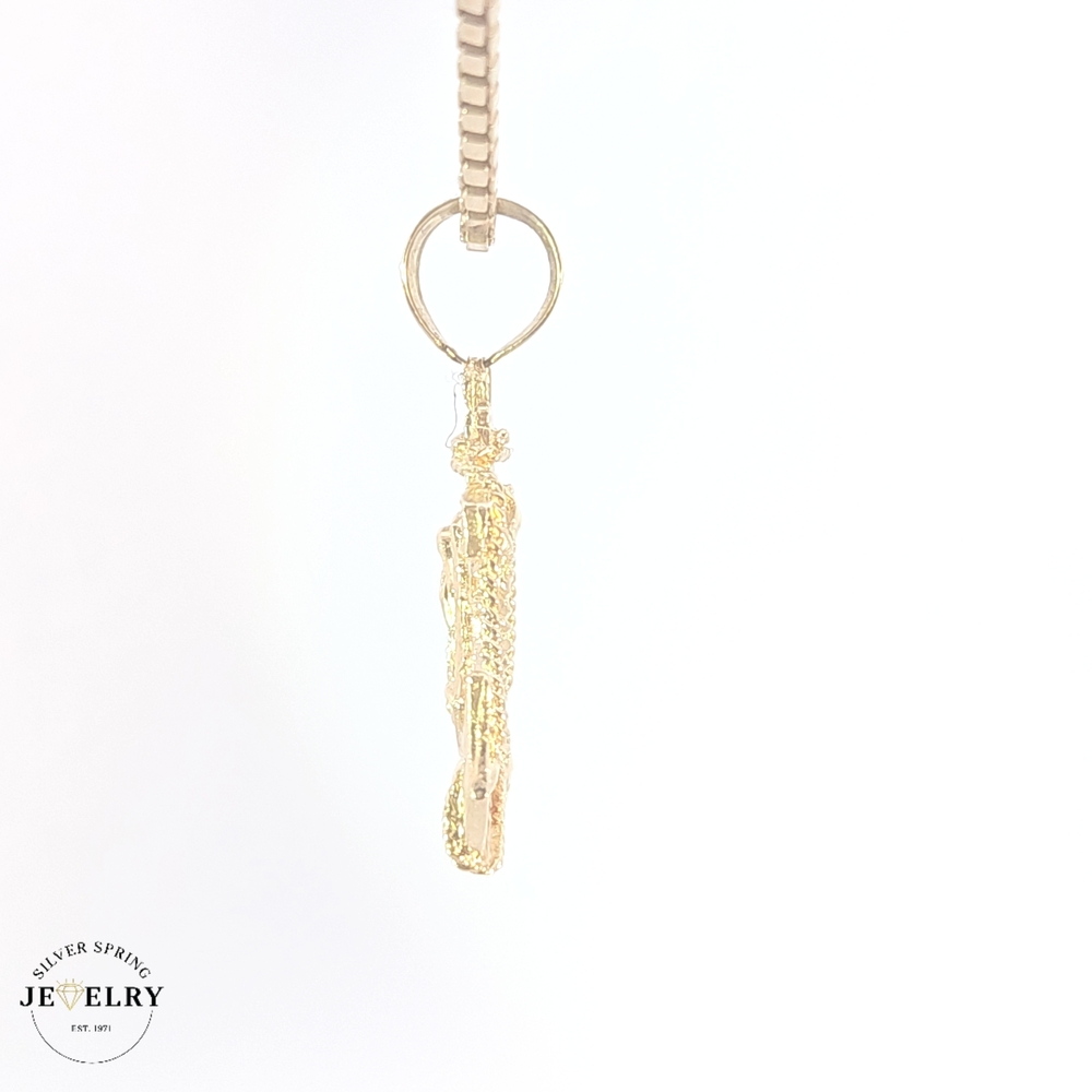 This beautiful Lady of Guadalupe Anchor Pendant is crafted from premium 14 karat gold, with a weight of 3.90 grams, ensuring its lasting durability and luster. The pendant features a width of 22mm and a length of 1.25 inches, a perfect size to make a statement without being overwhelming. The intricate design lends a touch of religious significance, making it not only a piece of jewelry but also a symbol of faith. It's an exceptional choice for those seeking a blend of style, spirituality, and quality.
