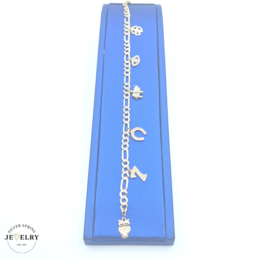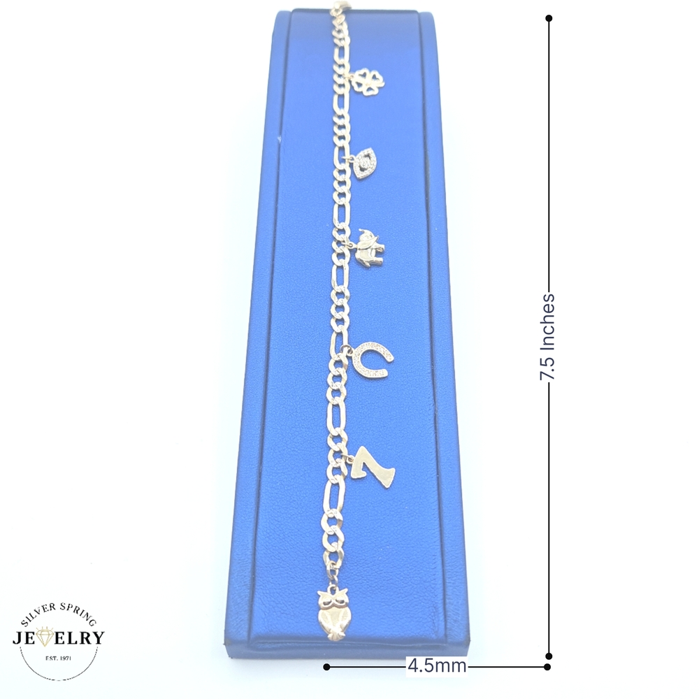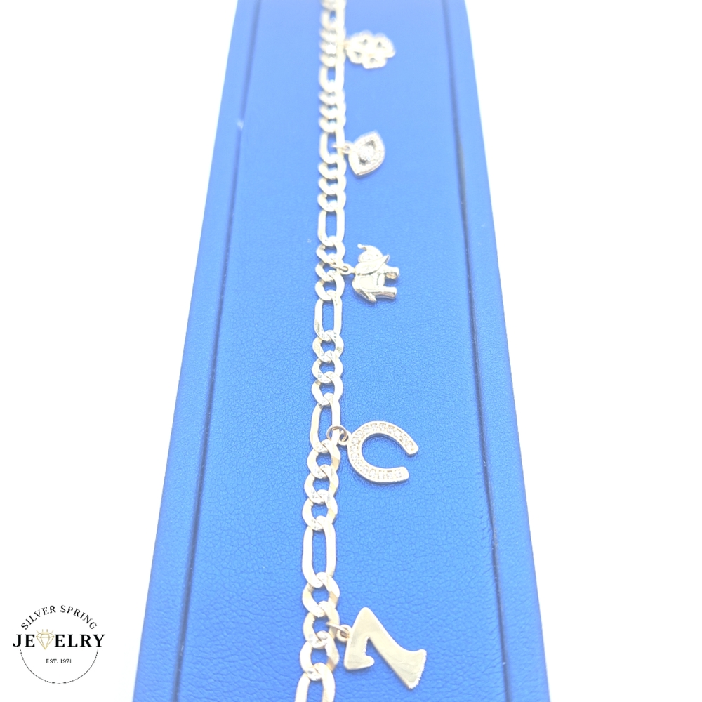 Experience luxury with this Lucky Charm Bracelet, meticulously crafted in 14kt gold and weighing 7.8 grams. It boasts a width of 4mm and a length of 7.5 inches – a size perfect for most wrists. This attractive bracelet features a glorious diamond-cut finish that truly elevates its aesthetic appeal. This piece promises not only longevity but also an added touch of elegance to any outfit, making it a standout accessory for any collection. The perfect lucky charm, ideal for a unique gift or a stylish personal treat.