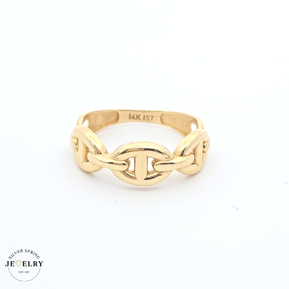 This stunning Mariner Fancy Ring is delicately crafted from 14kt gold and weighs a comfortable 1.8 grams. Perfect for everyday wear or special occasions, it provides an opulent touch to any outfit. It's size 7, making it a suitable choice for most individuals. With its timeless mariner design, it combines classic charm with modern sensibilities. This ring could be a magnificent gift for a loved one or a luxurious treat for oneself.