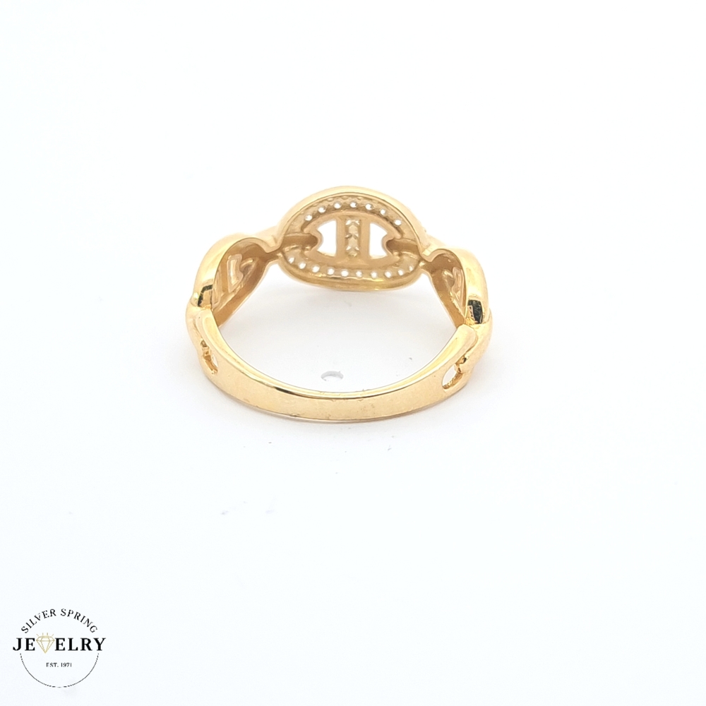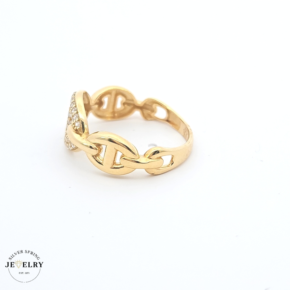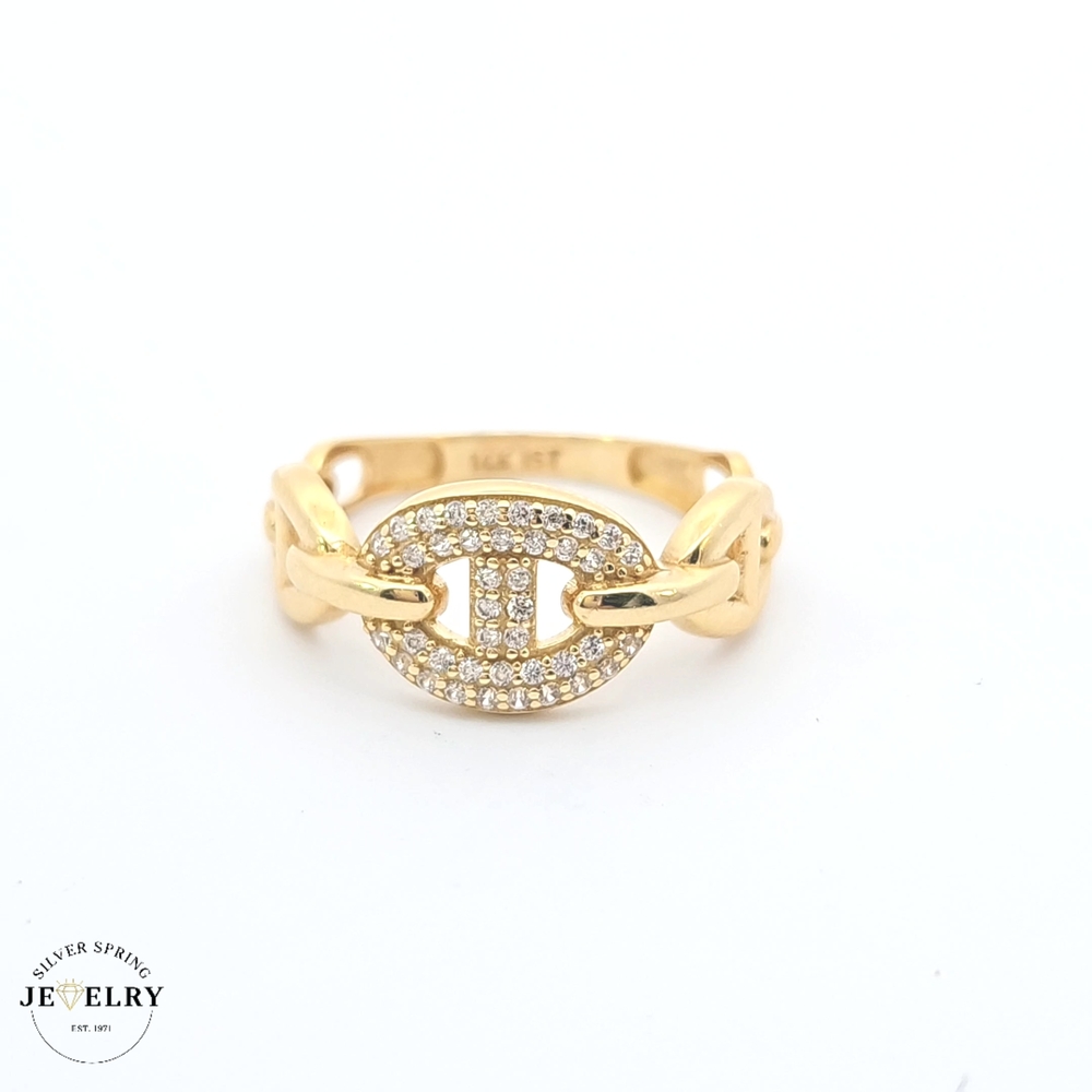 Unveil an exquisite style with this Mariner Ring, masterfully crafted from 14kt gold and weighing 2.2 grams. This eye-catching piece boasts a size 8 fit, making it ideal for a range of finger sizes. It brims with refinement and style underscored by the sparkling allure of intricately set zirconia. A perfect balance of luxurious charm and durability, this ring is truly a lasting treasure. Suitable for both daily wear and special occasions, it's a timeless accent to any outfit.