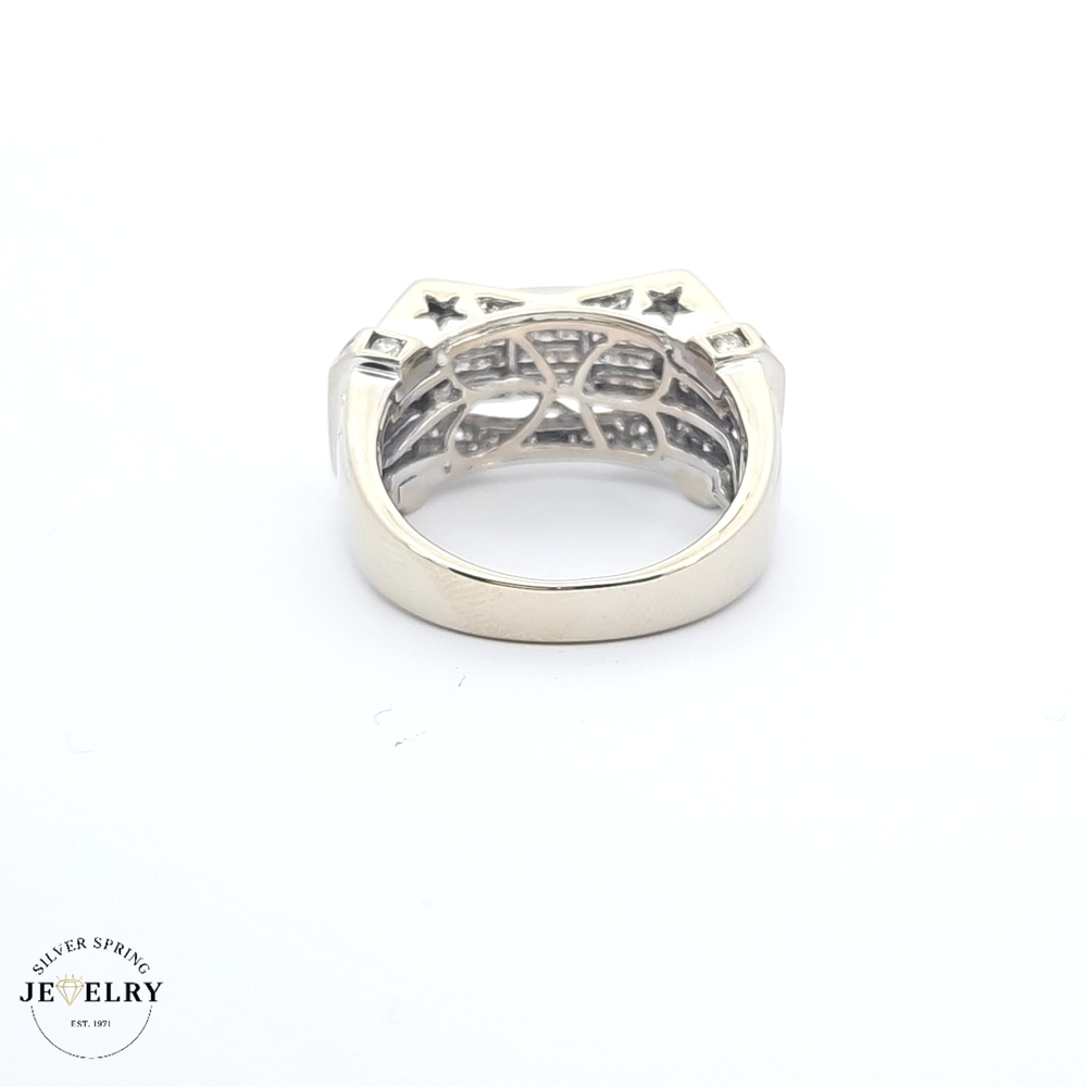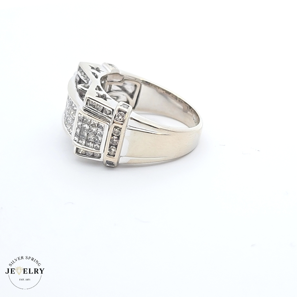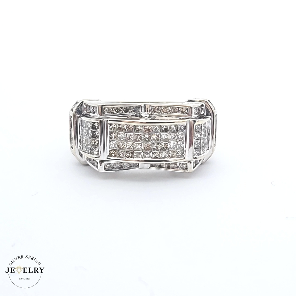 Elevate your style with this Men's Cluster Ring, meticulously crafted from brilliant 14kt white gold. This solid piece weighs a substantial 10.70 grams, signifying its premium quality. Studded with 2 1/4 Ct of glittering diamonds, size 10, it exudes a bold charm that's perfect for an assertive man. The white gold construction adds a layer of timeless elegance to this dazzling statement piece. Solidify your look with this luxurious adornment.
