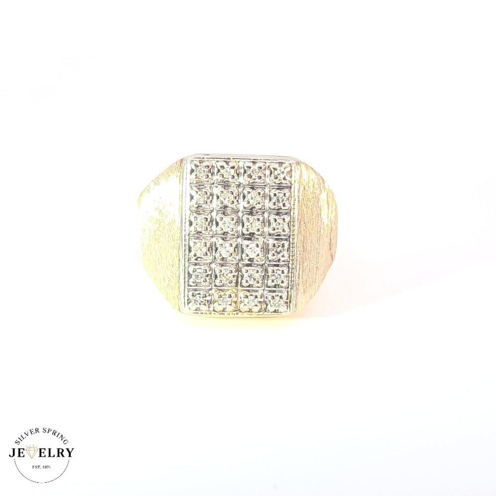 This Men's Ring is pure elegance, crafted from 14kt high-grade gold, weighing 11.10 grams. It exhibits an impressive width of 2.5mm, ensuring enduring quality and a robust feel. The piece is further amplified by the inclusion of approximately 0.50 Ct of authentic, brilliant-cut diamonds, which contribute to its alluring charisma. This luxury ring is a perfect fit for size 10.5 and effortlessly blends style and class. A distinctive piece sure to add a touch of sophistication to any outfit.