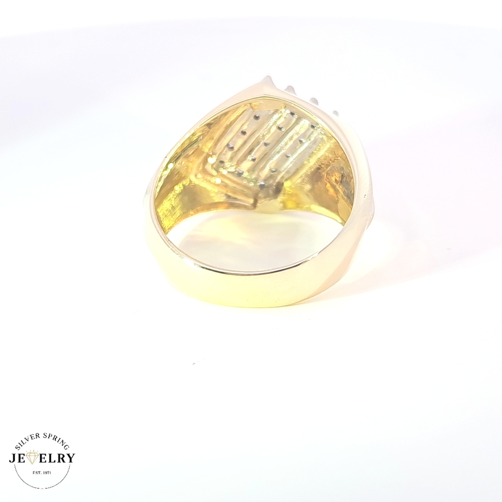 Elevate your ensemble with this luxurious men's ring crafted from high-quality 14kt gold and weighing 9.40 grams. This premium piece of jewelry features impressive diamonds approximately 1CT. The ring showcases excellent craftsmanship and provides a comfortable fit in a size 11. With its distinctive and sophisticated appearance, it's sure to impress, making it a perfect gift or a worthy addition to your personal collection.