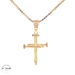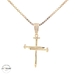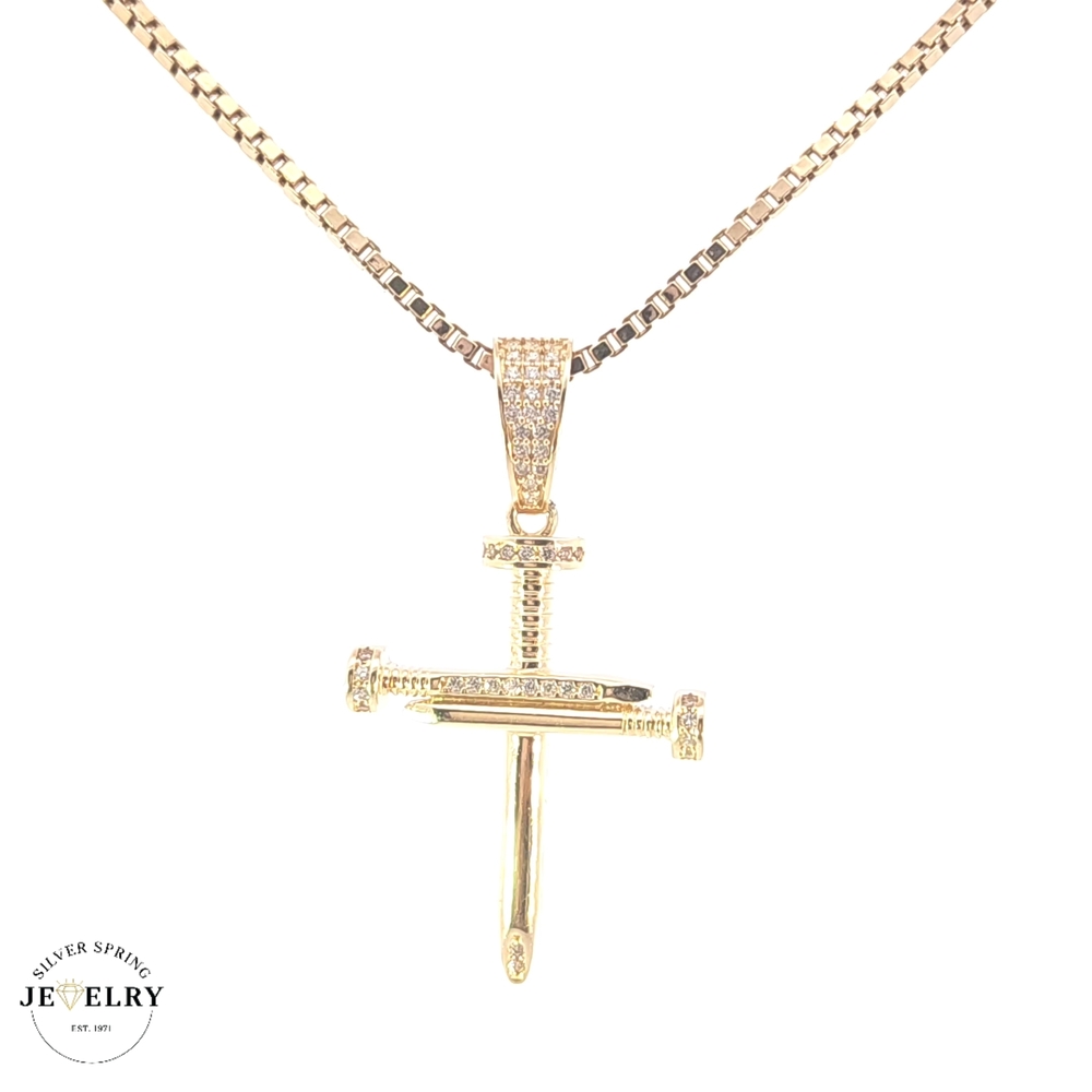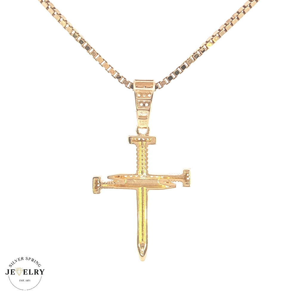 Experience divine elegance with this striking 14kt cross, weighing a solid 3.9 grams. Its 3mm width and 1.25 length make for a perfect, dainty piece. Adorned with radiant zirconia stones, it shimmers with every move. This cross boasts a unique nail style design, adding an edgy, modern touch to a traditional, meaningful piece. Be it for personal use or as a gift, this cross is an enchanting accessory.