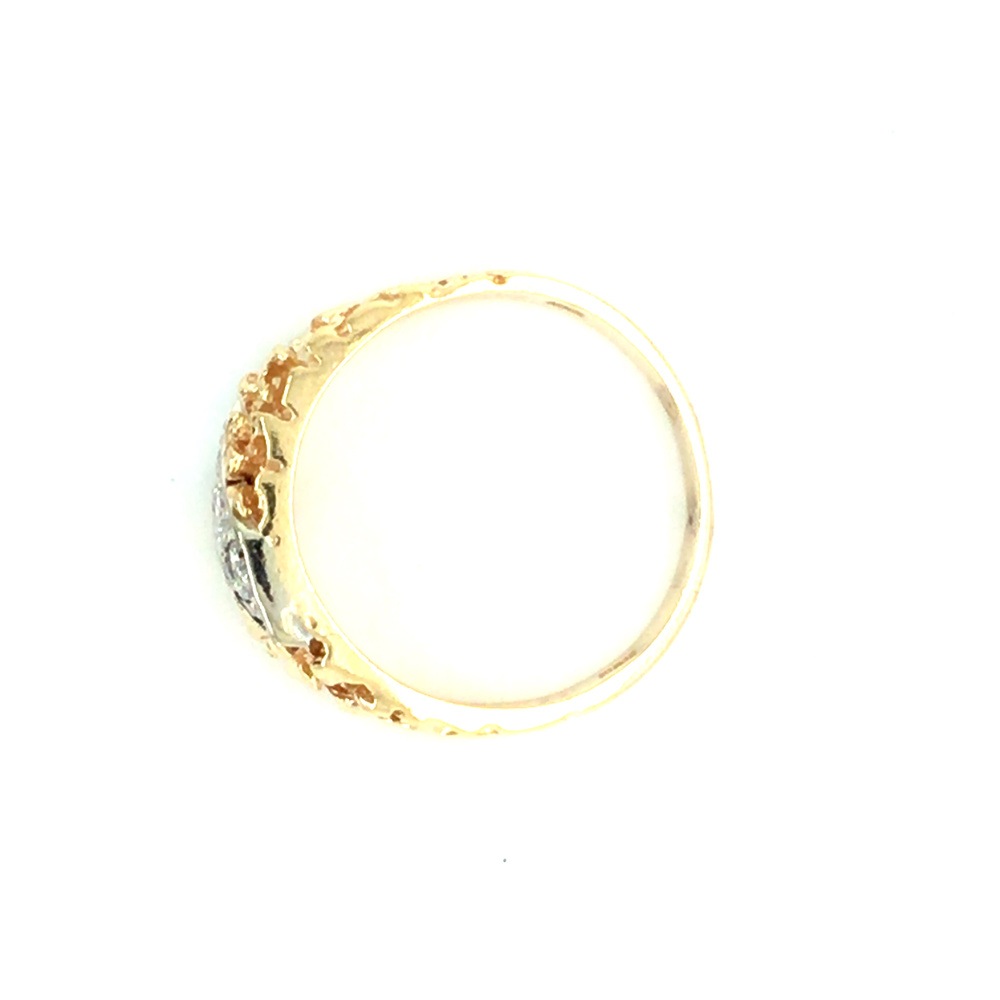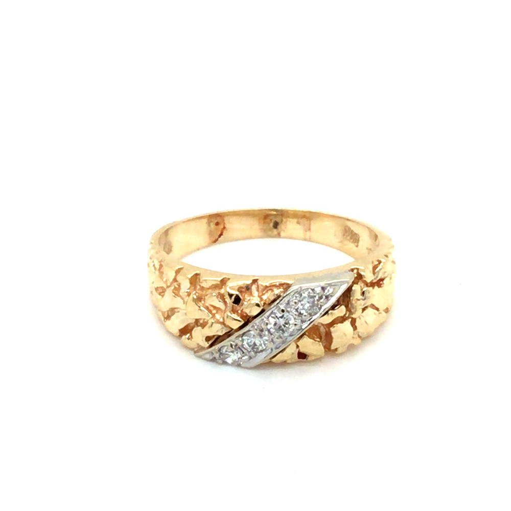 This exceptional Nugget Band Ring, weighing 4.50 grams, is crafted from refined 14k gold. It features an elegant diamond weighing 0.20ct, seamlessly incorporated into its intricate design. The ring is size 8.25, suitable for comfortable, everyday wear. Its visual appeal and exquisite craftsmanship make it a standout piece in any jewelry collection. Boost your chic factor and add a touch of timeless luxury with this stylish piece.