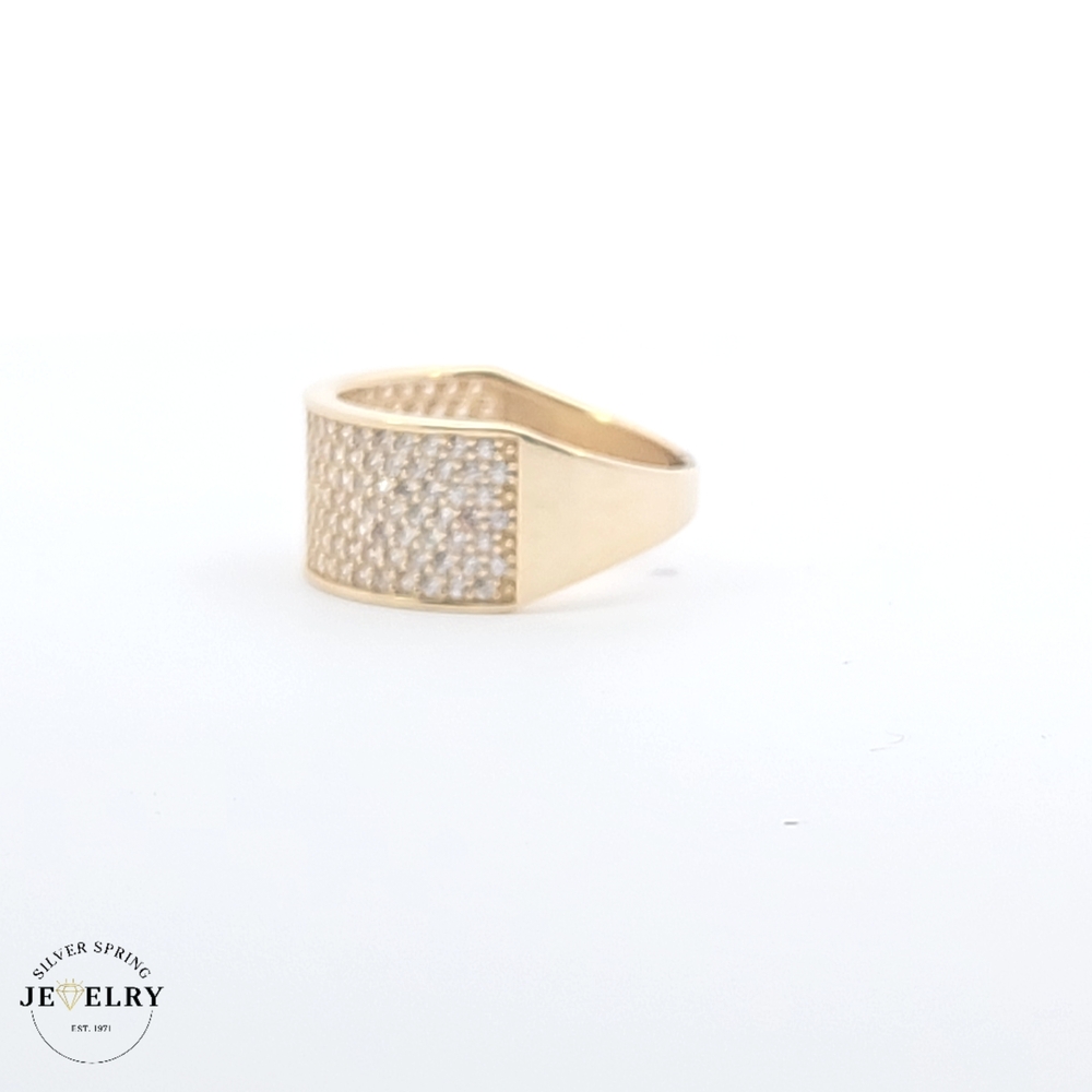 This exquisite Pave Ring is a testament to expert craftsmanship and unique design. Crafted from premium 14kt gold, it weighs a solid 3.40 grams, offering durability and a luxurious feel. The ring comes in a size 8, perfect for daily wear or special occasions. Adorned with high-quality cubic zirconia, this piece exudes an exceptional sparkle. It's an ideal choice for those seeking timeless elegance and sophistication.