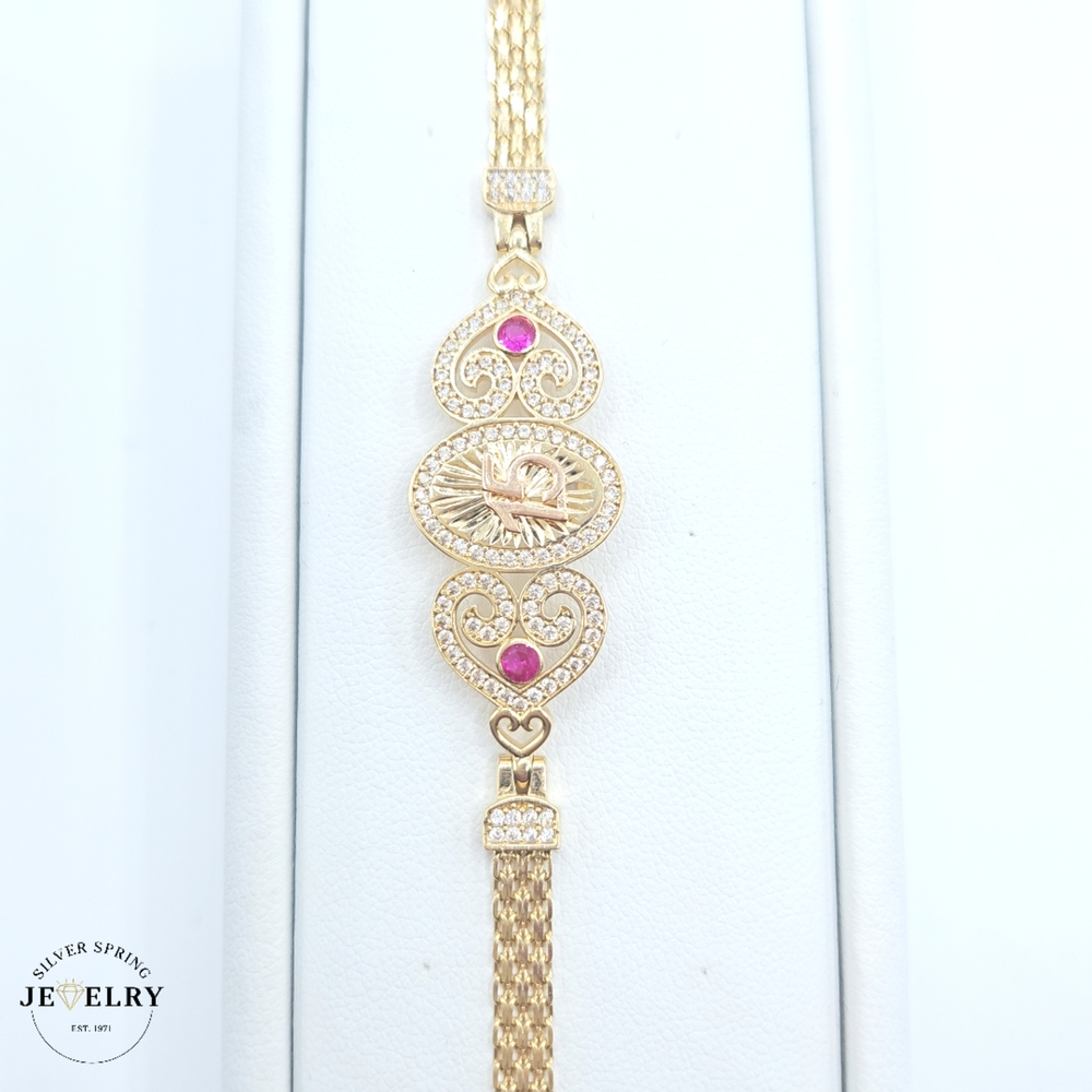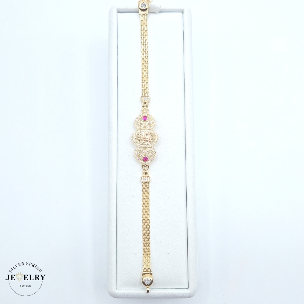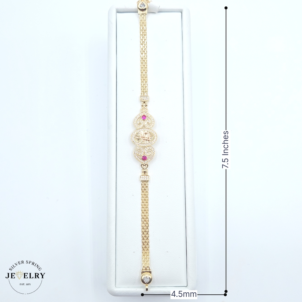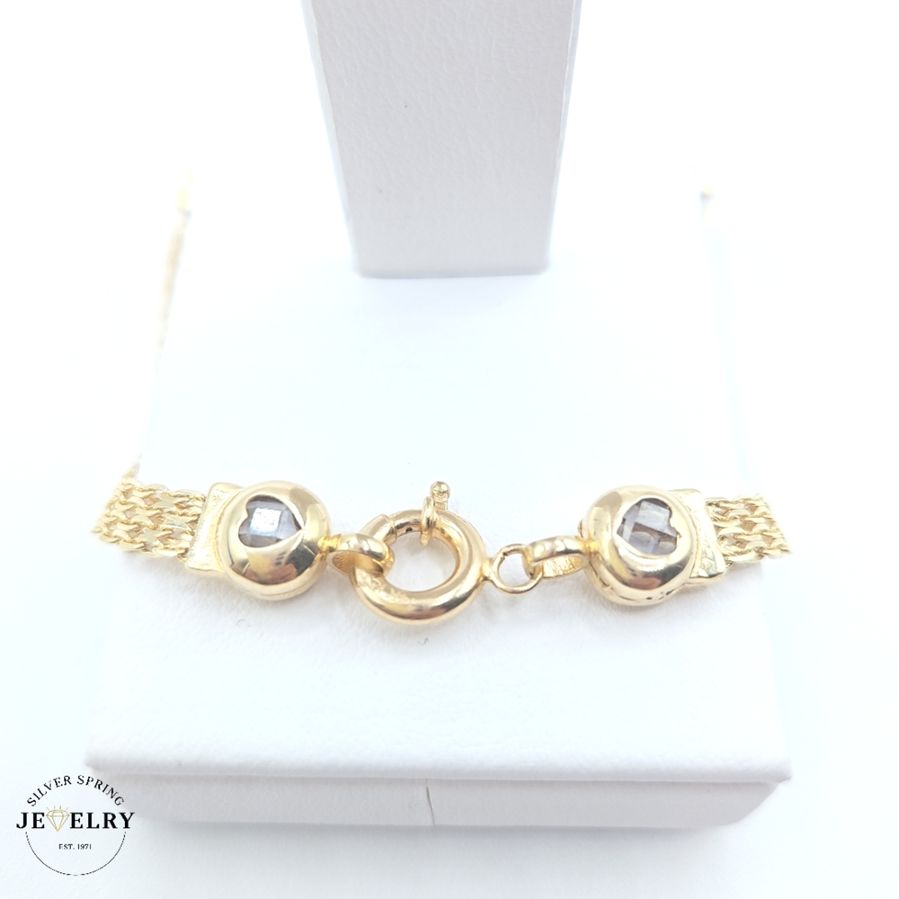 Adorn your wrist with this timeless Quinceañera Bismark link bracelet. Crafted in 14kt gold, this stunning piece weighs 9.2 grams and measures 7.5 inches a length. The 4.5mm width adds a subtle elegance without being overbearing. With two-tone color for a versatile look and adorned with sparkly zirconia, it's the perfect addition to any outfit.