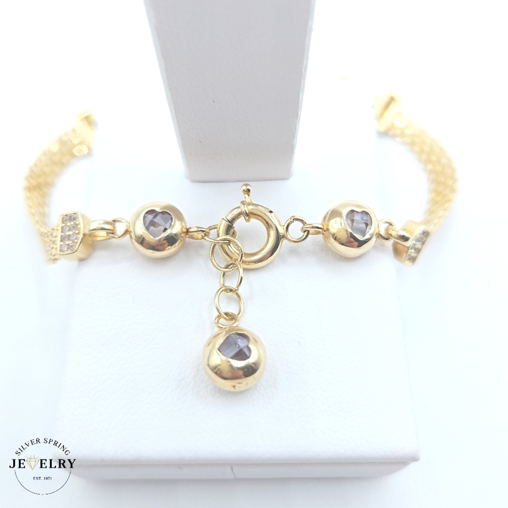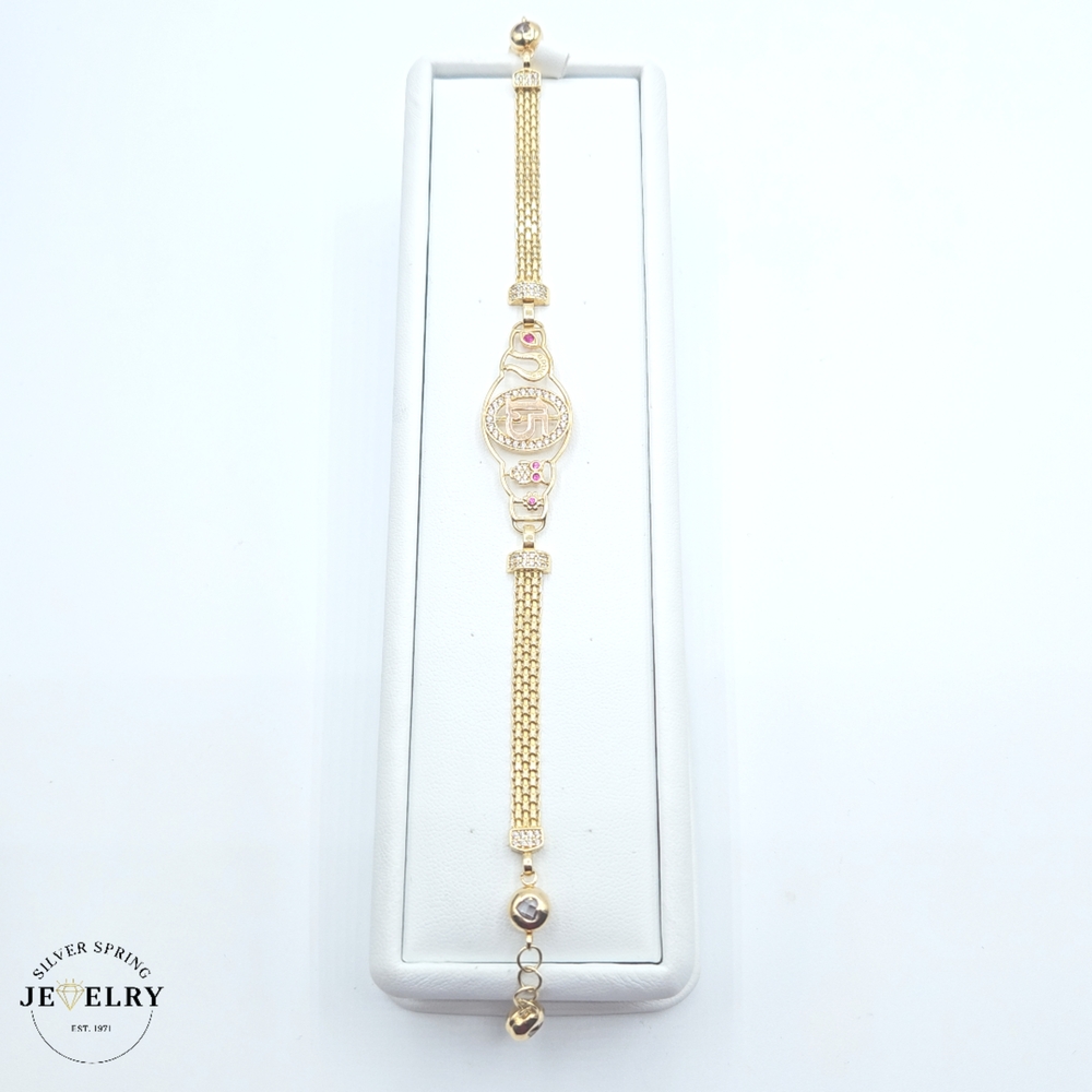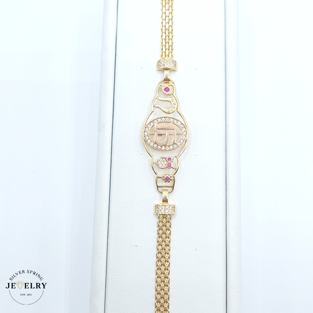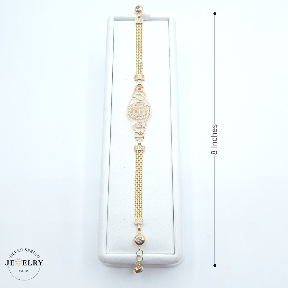Celebrate your Quinceañera with this stunning Bismak link bracelet. Crafted from 14kt, two-tone gold, it weighs a substantial 10.4 grams. The bracelet features a generous 5mm width and a convenient 8-inch length, making it perfect for most wrists. Also, it is adorned with sparkling zirconia stones, adding extra elegance to any outfit. Its two-tone design makes for versatile styling and a timeless addition to your jewelry collection. Enjoy making a grand statement with this beautiful piece.