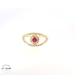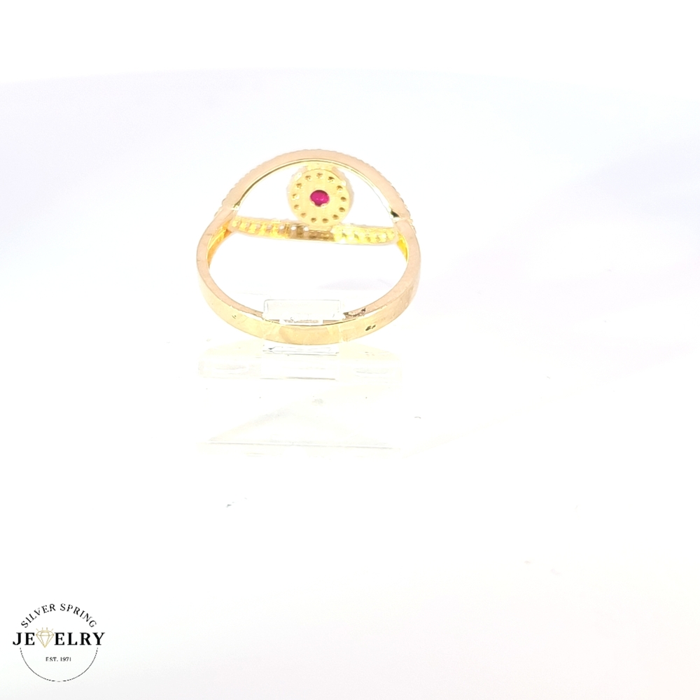 This beautiful Red Evil Eye Ring, made from genuine 14 karat gold, weighs 1.9 grams, making it delicate yet sturdy. The captivating evil eye design in a vibrant red hue is delicate and offers protection against negative energy. This ring, sized to fit a 6 1/4 measurement, is enchanting and exudes a mysterious elegance, making it an exquisite addition to any jewelry collection. Ideal for everyday wear or special occasions, it's a symbol of compelling style with a powerful meaning.