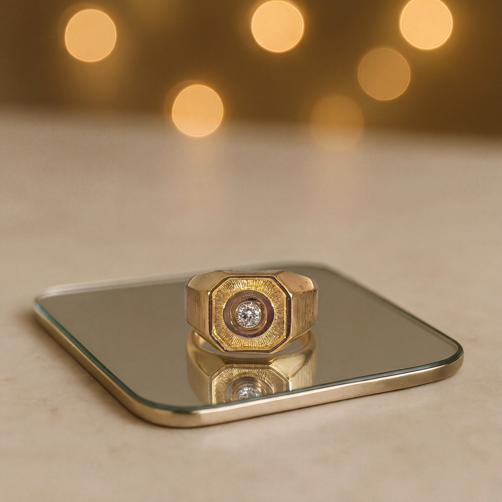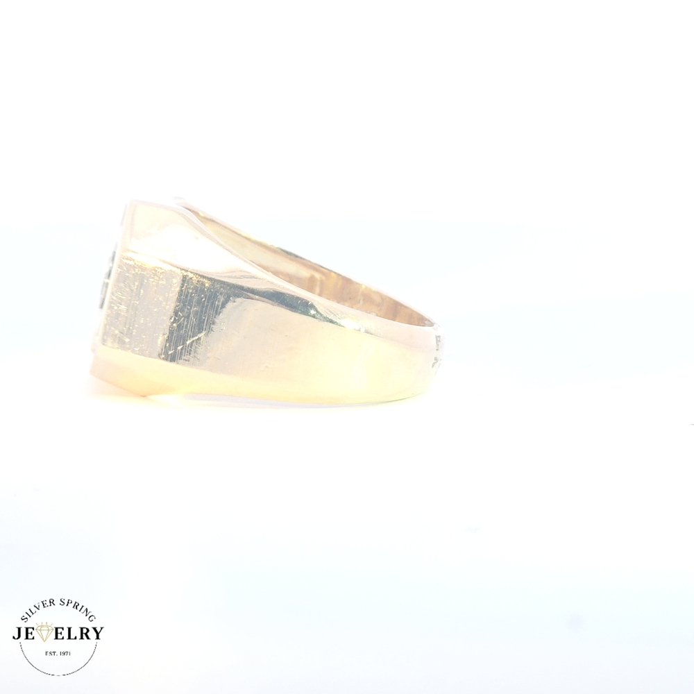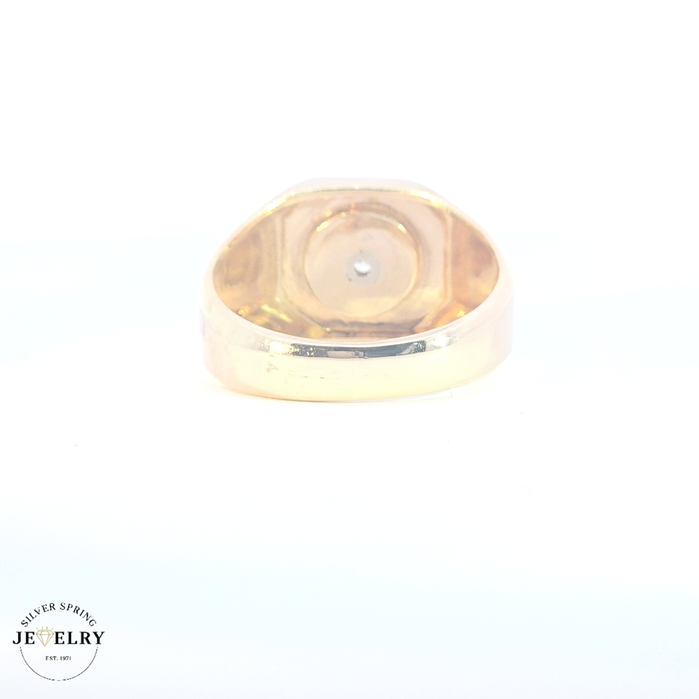 Experience elegance with this Men's Solitaire Diamond Ring. Painstakingly crafted from 14kt gold weighing 8.20 grams, this ring guarantees both durability and class. The centerpiece is a 0.16ct Solitaire diamond, skillfully cut to radiate brilliance. Designed with a perfect balance of masculinity and sophistication, it is available in size 9 1/4. A timeless accessory for any discerning gentleman, this piece is a testament to both quality and exceptional craftsmanship. A stunning way to make a statement, this ring embodies the height of luxury.