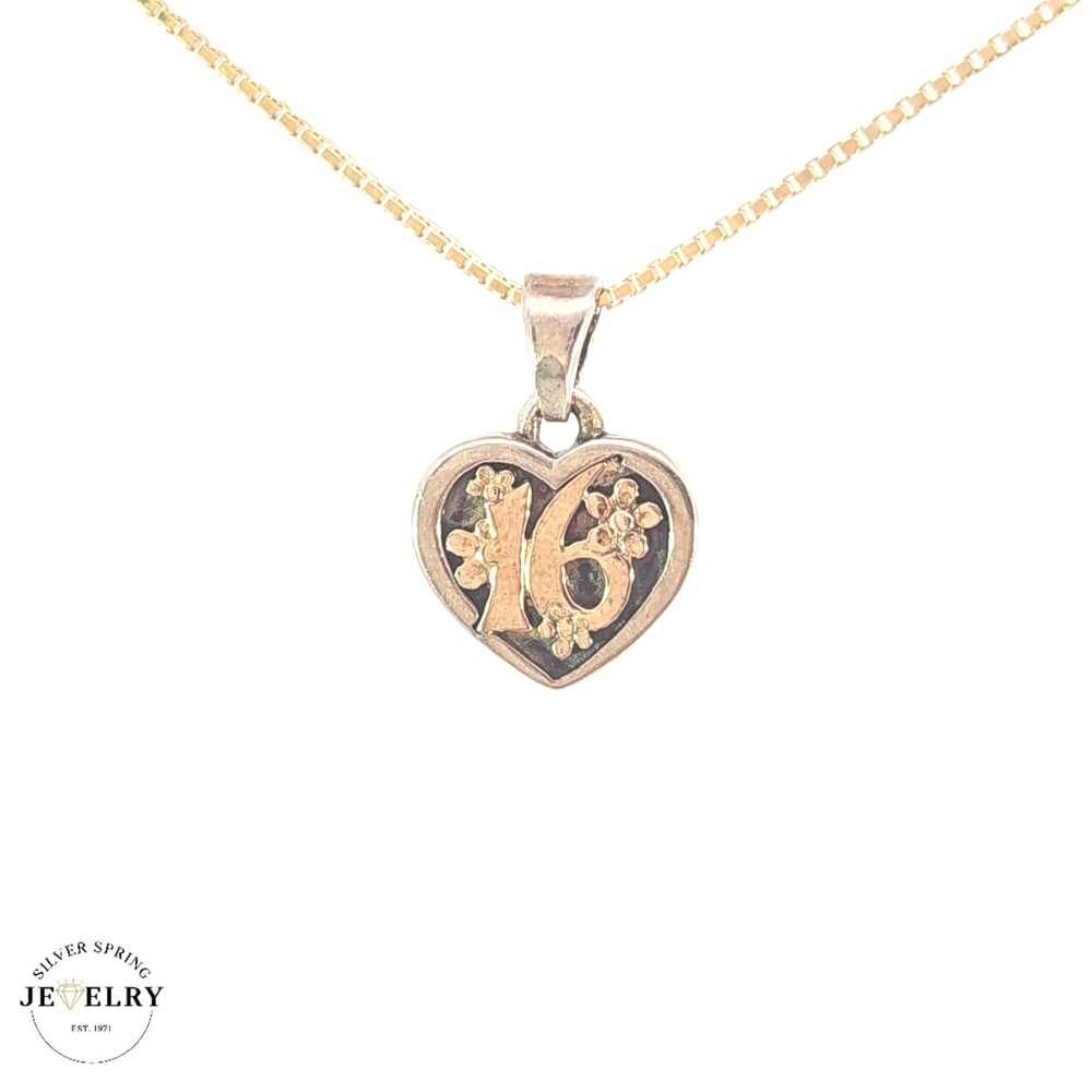 Celebrate a milestone birthday with our 14kt Sweet 16 Pendant. Weighing at 1.20 Grams, crafted in an elegant two-tone design. It is compact, measuring at a width of 11mm and a 0.50 Inches, making it a perfect, delicate addition to any outfit. This pendant will make the sweet 16 birthday truly memorable and serve as a keepsake reminder of the special day. It is not only a piece of jewelry, but a gift of love and sentiment.