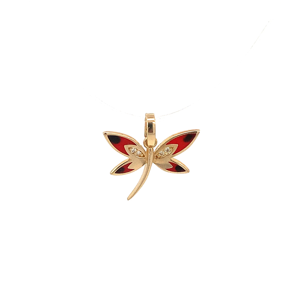 This exquisite 14kt Dragonfly Pendant, weighing 1.10 grams, is an embodiment of sublime elegance and intricate artistry. A magical fusion of golden sheen and sculptural detail, the pendant captures the elusive charm of precious dragonflies, frozen in a timeless flight of grace. Styled with a refined, masterful touch, this jewel is designed to drape you in radiant transcendence. Each piece celebrates the sheer majesty of nature in the most glittering form. Experience the enchanting allure of this unique charm, it's not just a pendant, it's a touch of whimsical elegance!