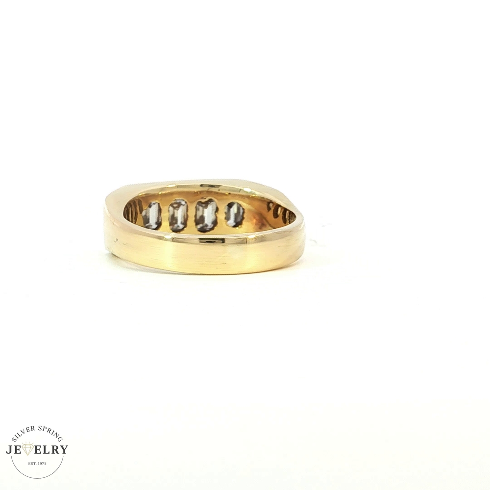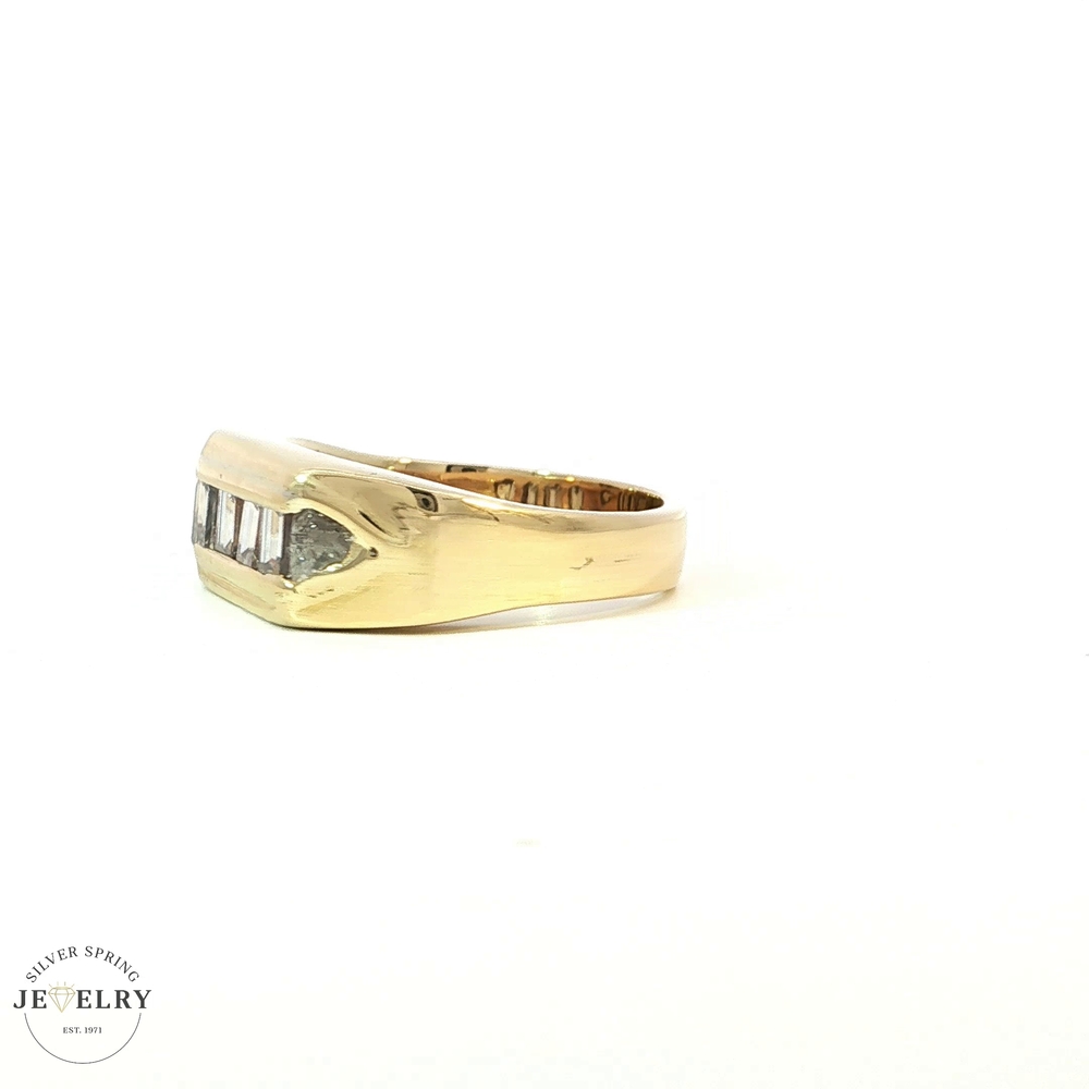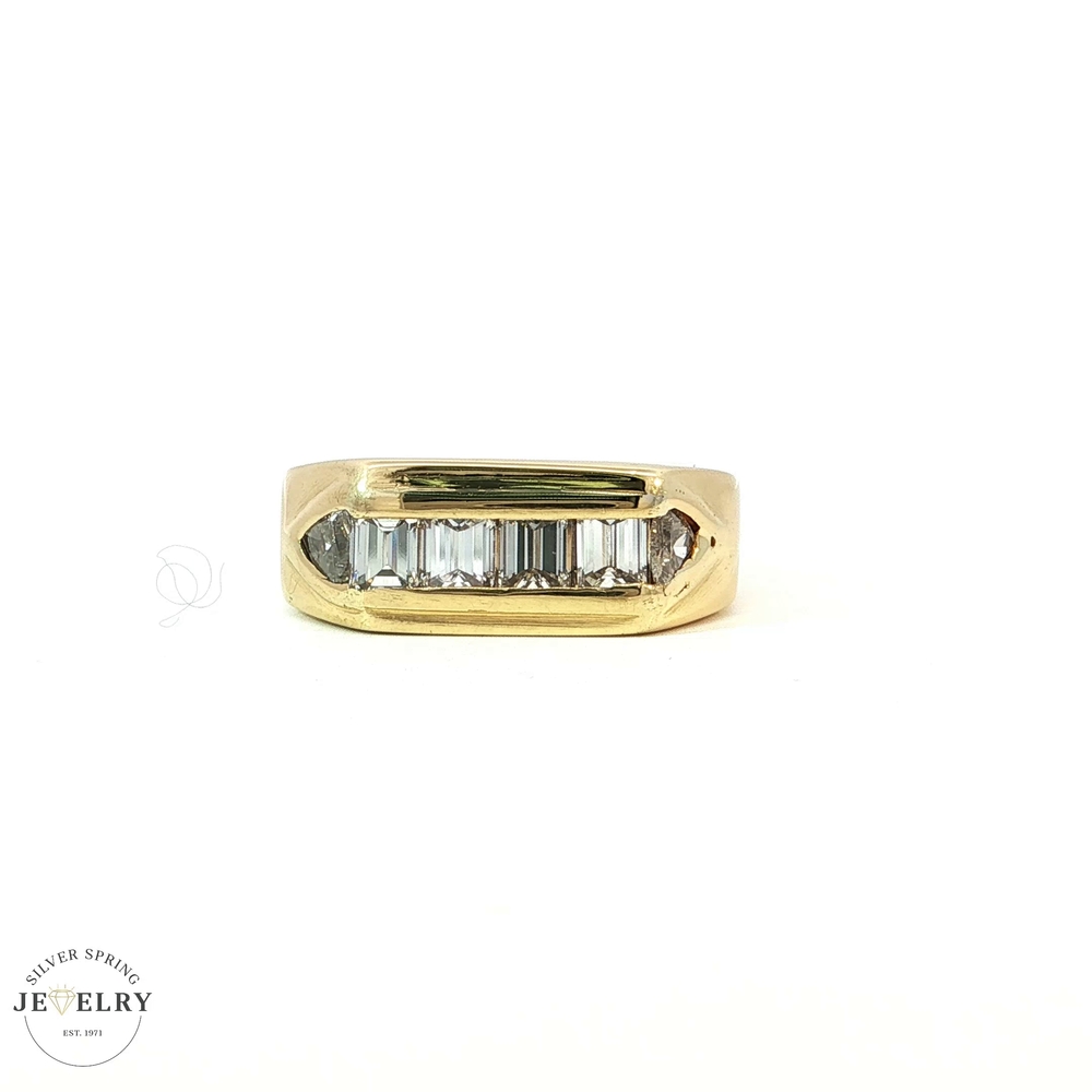 This exquisite piece of jewelry is finely crafted from 18-karat gold and weighs a substantial 10.70 grams. Its allure is enhanced by the presence of four baguette-cut diamonds and two trillion-cut diamonds, totaling 1 carat in total diamond weight. Each diamond has been handpicked and impeccably graded, with a color rating of G and a clarity rating of VS. This collection represents the perfect balance of luxury and elegance, showcasing a refined taste.